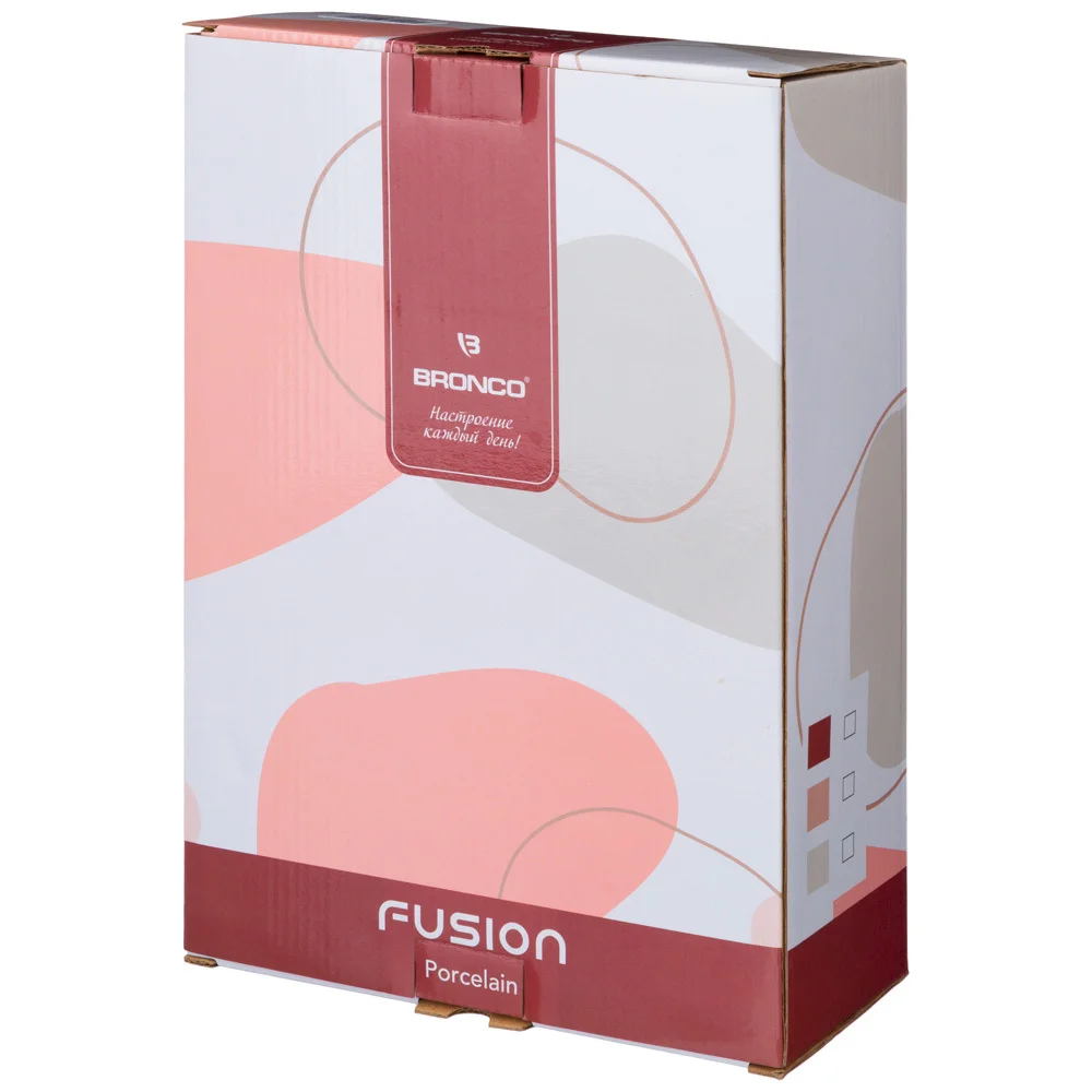 ТМ "BRONCO" шагает в ногу со временем. Новые технологии, формы, цвета поражают своей смелостью, стилем. Упрочненный фарфор на каждый день - это отличный подарок себе и своим друзьям. Коллекции FUSION поможет воплотить самые смелые решения. Уникальные формы, модные брусничный и пудровый цвета в сочетании с белым. Это коллекция для тех, кто следует модным тенденция, всегда стилен и молод. Продукция сертифицирована и безопасна для контакта с пищевыми продуктами. Фарфоровые изделия без плетенных корзин можно смело использовать в посудомоечной машине, ставить в микроволновую печь, духовой шкаф.