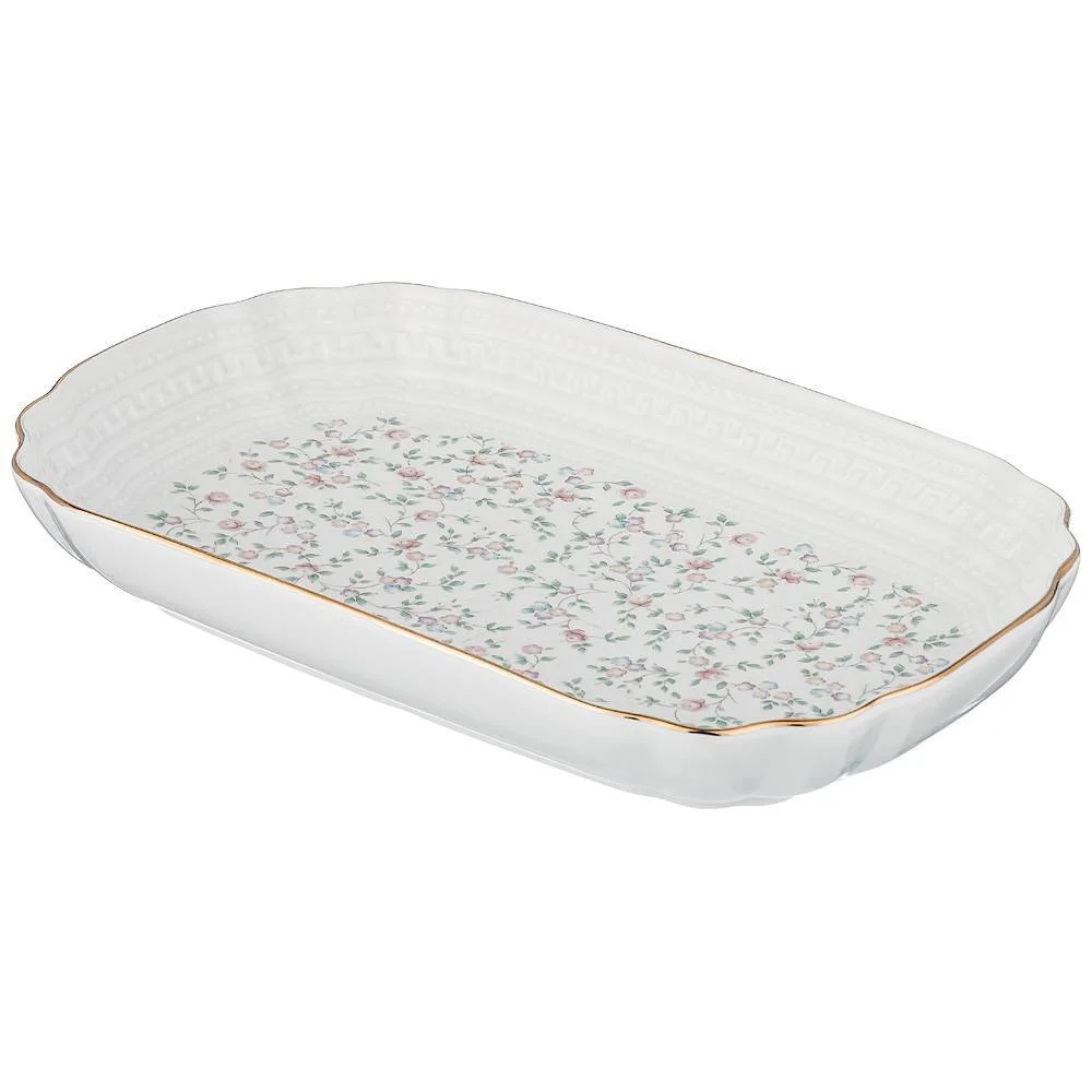 Посуда для сервировки стола из тонкостенного упрочненного фарфора. Прошла сертификацию. Безопасна для контакта с пищевыми продуктами. Тонкий рельеф. Нежный ситцевый декор с золотой окантовкой. Отличный подарок. Не использовать в микроволновой печи, не рекомендуется мыть в посудомоечной машине.