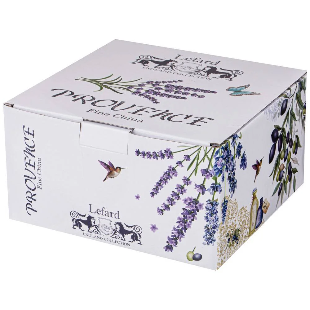 Коллекция "Прованс" - нежный запах Лаванды в наполненных солнцем лугах. Посуда из тонкостенного фарфора прошла сертификацию. Безопасна для контакта с пищевыми продуктами. Украшение любого стола. Отличный подарок. Разрешено использование в микроволновой печи, можно мыть в посудомоечной машине мягкими моющими средствами.