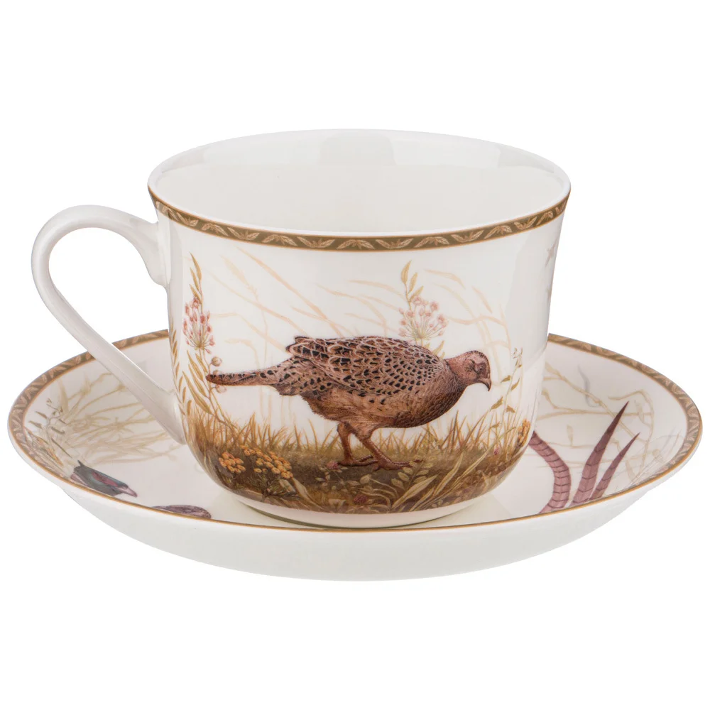 Эксклюзивная коллекция "Hunting" (“Охота”) от дизайнеров ТМ Lefard с одним из самых традиционных и популярных сюжетов на белоснежном костяном фарфоре. Блестящие зарисовки из мира природы глазами охотника-фотографа: лисы, зайцы, фазаны, тетерева… притаившиеся и гордо расхаживающие в дикой природе. Эта коллекция для тех, кто любит наблюдать за настоящими хозяевами лесов и прудов, любоваться красотой окружающего мира. Теплые тона, современные формы, удобные ручки, оптимальные объемы. В коллекции кружки, чайные пары, закусочные тарелки и блюда, порционные салатники. Красочная индивидуальная упаковка. Это прекрасный подарок для себя и своих близких! Посуда прошла сертификацию. Безопасна для контакта с пищевыми продуктами. Мыть мягкими моющими неабразивными средствами. Можно смело использовать в микроволновой печи, мыть в посудомоечной машине.