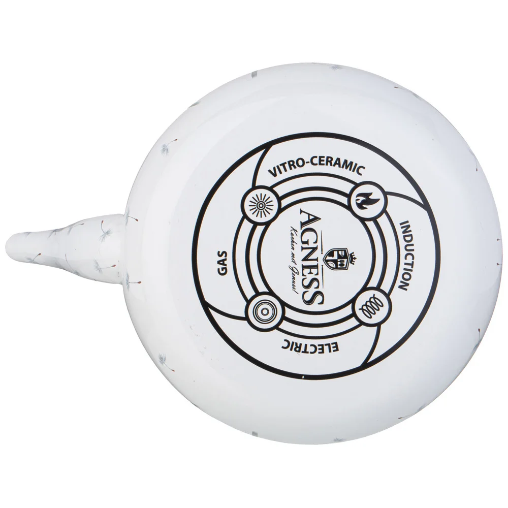 Эмалированная посуда AGNESS - отличный выбор для Вашей кухни! Посуда из эксклюзивной серии «Dandelion» от торговой марки AGNESS станет приятным акцентом на любой кухне. Благодаря неповторимому дизайну каждое изделие будет настоящим украшением вашей кухни. Данная посуда прекрасно подойдет в качестве подарка и никого не оставит равнодушным. Сделайте себе подарок, побалуйте себя и своих близких! Эмалированная посуда обладает рядом преимуществ: • Эмалированная посуда не требует особого ухода и легко моется • Эмалированная посуда гигиенична - не удерживает болезнетворных микробов и бактерий • Эргономичная керамическая ручка с фиксатором. Используйте стопер для ручки, когда нагреваете чайник для плиты. • Эмалированная посуда подходит для всех видов плит, включая ИНДУКЦИОННЫЕ ПЛИТЫ. • Посуда проходит 3 этапа обжига, эта технология позволяет сохранить яркость расцветок деколи, а также придает прочность эмалированной посуде • Все деколи наносятся вручную, а затем обжигаются при температуре около 800 С • Толщина стенок и дна посуды 0,6мм Правила ухода за эмалированной посудой просты: • Не использовать абразивные чистящие средства; • Мыть с применением нейтральных моющих средств, подходит для мытья в посудомоечной машине; • Избегать резкого перепада температур. • Не нагревать пустой чайник, а также не допускать выкипания воды • При использовании на плитеотпускать ручку чайника на стопер • При транспортировке, хранение и спользовании необходимо оберегать эмалированную посуду от механических повреждений