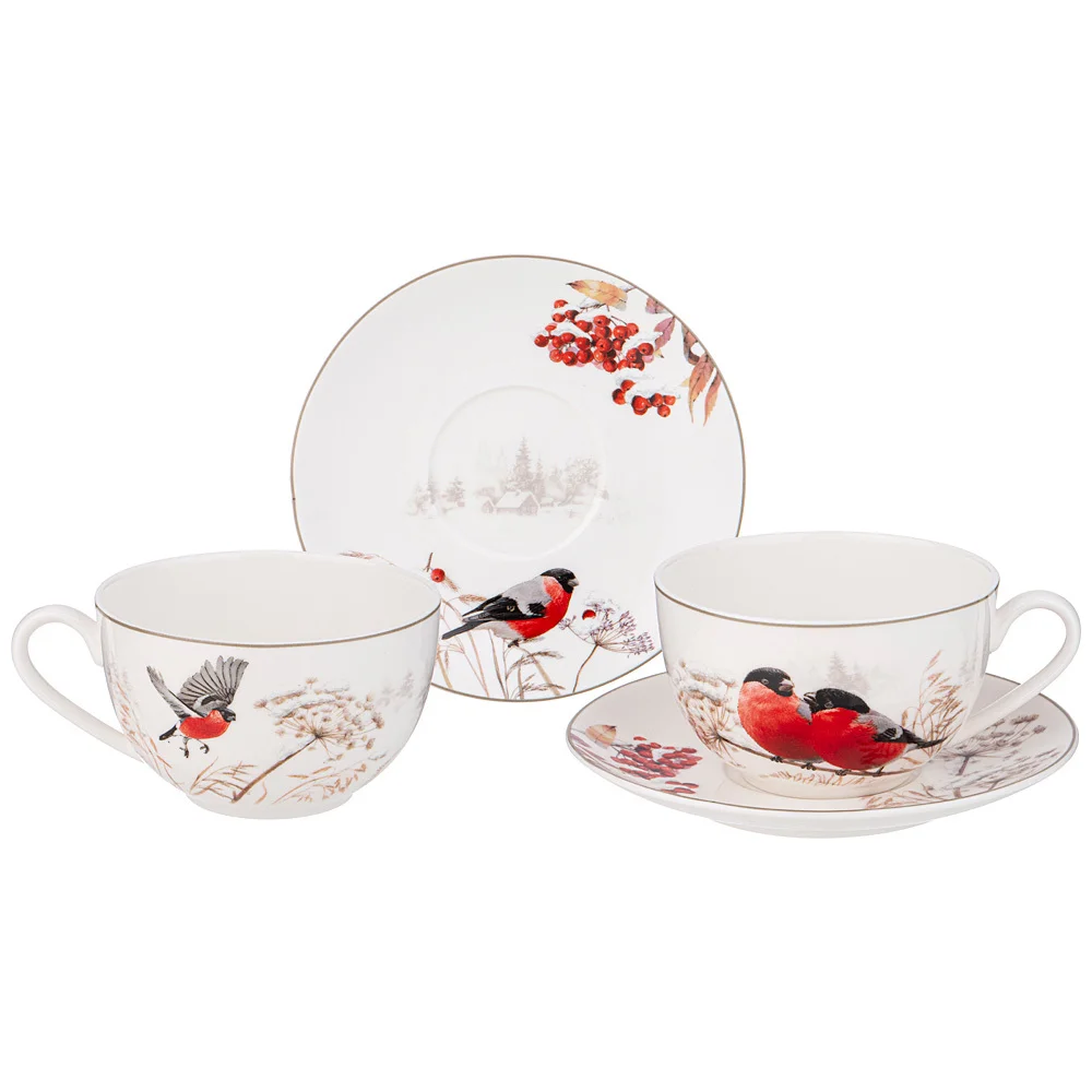 Зимой на фоне белого снега снегири на ветках выглядят наиболее эффектно и нарядно, словно праздничные шарики украсили деревья. Зимний снегирь - это своего рода символ снега, мороза, заснеженных деревьев, хорошего настроения и праздников. Снегири очень любят рябину. Обычно они подлетают к дереву стайкой и снегири, как настоящие джентльмены и знатоки хороших манер, предоставляют право своим дамам выбрать самые сочные и вкусные грозди ягод. Фото снегирей очень часто украшают различные новогодние открытки, календари, журналы. Дизайнеры ТМ LEFARD разместили этих ярких птиц на белоснежном тонкостенном фарфоре. Коллекция «Снегири» хороша для ежедневного использования и создания праздничного настроения. Яркая и стильная упаковка. Хороший подарок. Продукция сертифицирована, безопасна для контакта с пищевыми продуктами. Можно смело использовать в посудомоечной машине и микроволновой печи.