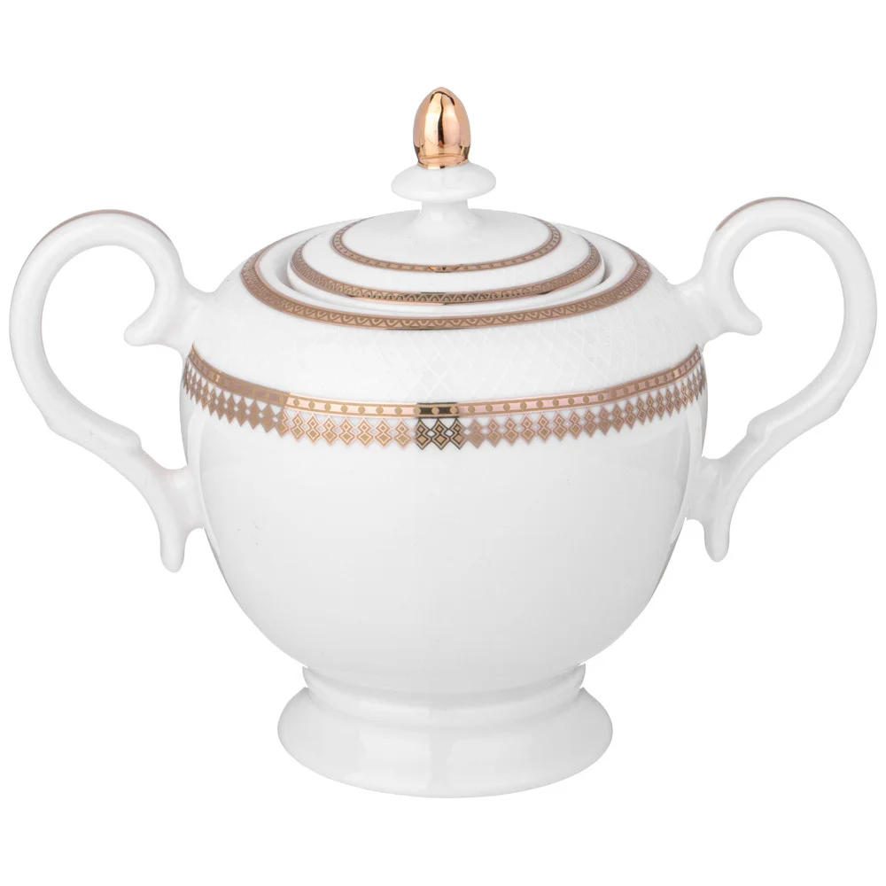 ТМ LEFARD Сервиз чайный "Праздничный" для торжественного чаепития и семейных застолий. Изысканный фарфор Bone Pocelain с эффектом костяного фафора, тонкий и полупрозрачный, прочный и никогда не темнеет. Утонченный кружевной рельефный орнамент выглядит объемным и привлекательным благодаря различной обработке выпуклых и базовых поверхностей. Изящная золотая обводка придает блеск и торжественность. Эта посуда замечательный подарок на юбилей, день рождения, новоселье, который наверняка пригодится каждой семье, запомнится навсегда и прослужит долгие годы. Дизайнеры торговой марки предлагают обеденный сервиз и наборы тарелок и чайных пар, чтобы сформировать полную сервировку стола предметами коллекции на 6 или 12 персон. Не рекомендуется мыть в посудомоечной машине. Нельзя использовать в микроволновой печи. Комплектность: чайник 850 мл, сахарница 300 мл, чайная пара 300 мл 6 шт., тарелка десертная 6 шт.