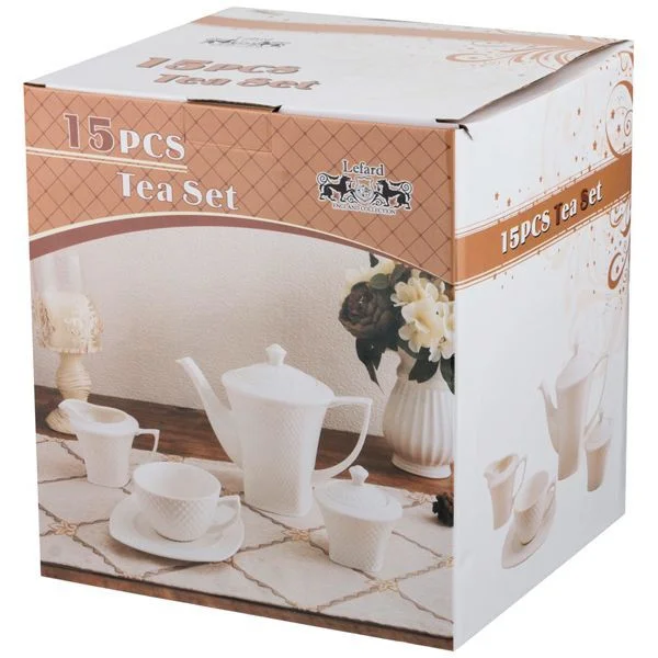 TM Lefard коллекция "Диаманд" - посуда и предметы сервировки из белого фарфора с рельефом. Изделия выполнены из упрочненного фарфора. Стильная упаковка. Идеальная сервировка праздничного и ежедневного стола. Отличный подарок! Продукция сертифицирована, безопасна для контакта с пищевыми продуктами. Можно ставить в микроволновую печь и мыть в посудомоечной машине. ЧАЙНИК 1100МЛ 25.4*13.7*16СМ - 1ШТ, МОЛОЧНИК 220МЛ 13.8*9.4*9.5СМ - 1ШТ, САХАРНИЦА 220МЛ 9.6*9.6*7.6СМ - 1ШТ, ЧАШКА 220МЛ 12.6*10.1*6СМ - 6ШТ, БЛЮДЦЕ 15.7*15.7*1.6СМ - 6ШТ