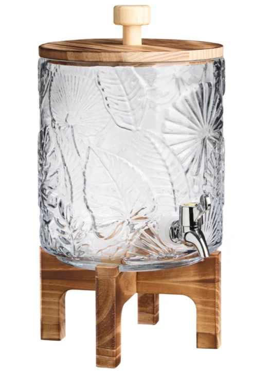 Элегантный диспенсер для напитков — именно то, что нужно для уютных встреч и праздничных моментов. Создайте атмосферу тепла и гармонии с нашим стильным диспенсером, который станет настоящей жемчужиной вашего интерьера. Изготовленный из экологически чистого стекла без содержания свинца и украшенный естественным деревом, он сочетает в себе практичность и утончённый дизайн. Его изысканная рифлёная поверхность и прочная деревянная основа из сосны делают каждую подачу напитков особенной — ведь даже простой процесс становится маленьким ритуалом. Идеальный подарок ценителям красоты, качества и уюта. Добавьте нотки натуральности и стиля в свои повседневные моменты и торжества, наслаждаясь изысканностью и комфортом с нашим эксклюзивным диспенсером!