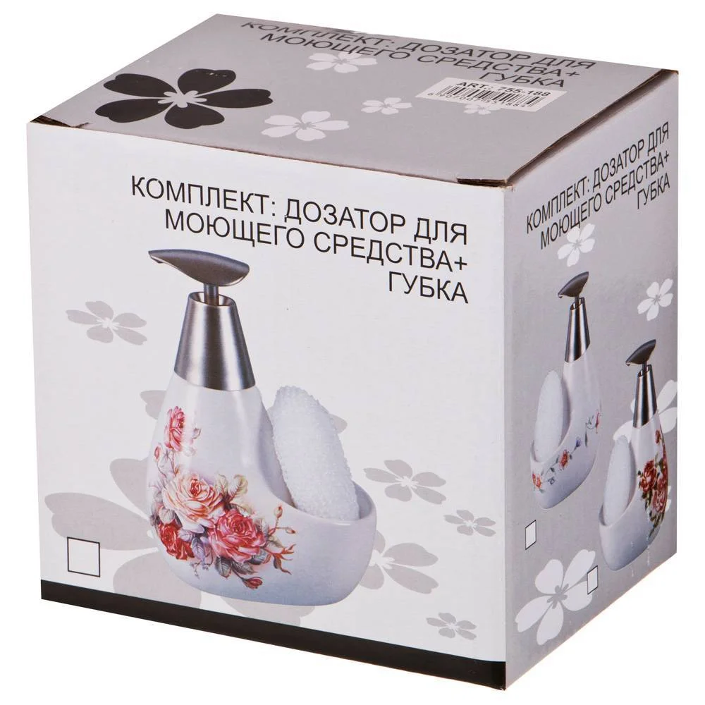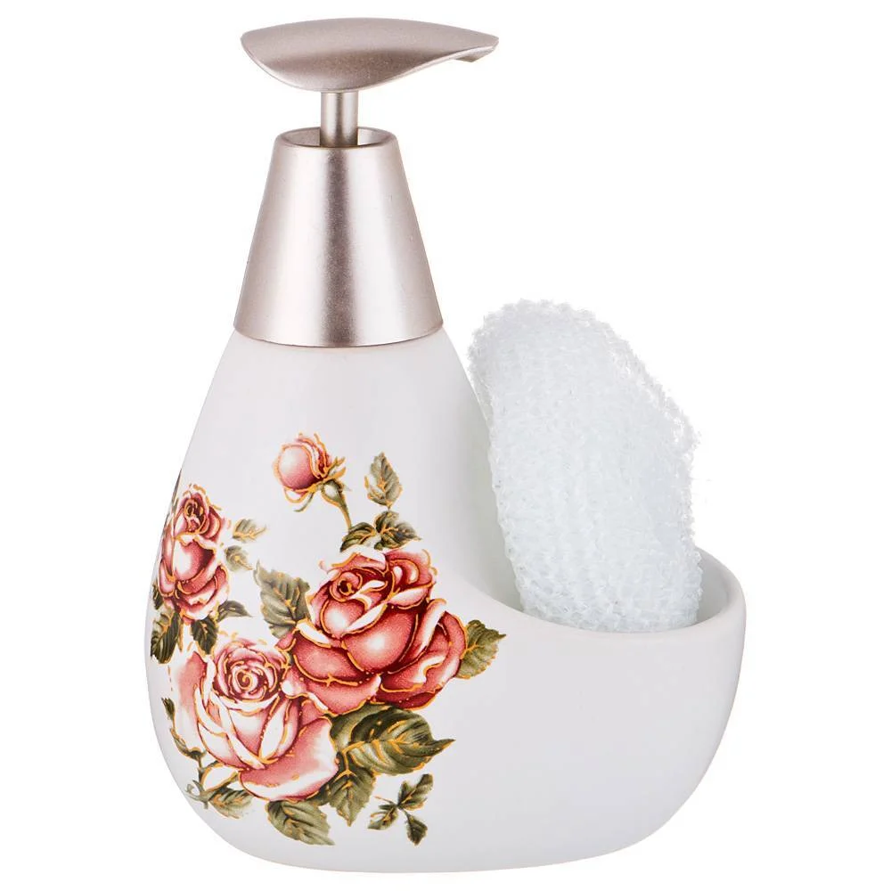 Дозатор Для Моющего Средства Корейская Роза 350 Мл. 11*9 См. Высота=16 См. + Губка 755-190