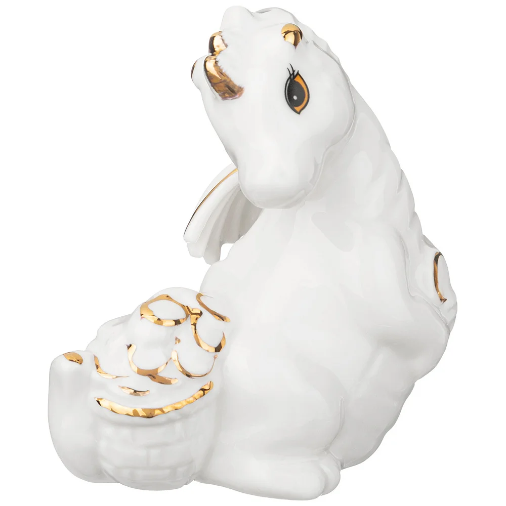 Фарфор был всегда предметом роскоши. Наличие в доме хорошего фарфора говорит о состоятельности и хорошем вкусе хозяев! Фарфоровые фигурки и статуэтки из серии DRAGON BLANCO от бренда LEFARD, при всем их разнообразии, имеют характерный стиль, в котором простота форм объединяется с изяществом и завершенностью. Эти фарфоровые изделия будут одними из самых чудесных подарков. Фигурки выполнены в классическом белом цвете и декорированы ручной росписью золотом. Благодаря присутствию этих милых фигурок, атмосфера дома становится более уютной и теплой. Это будет отличный подарок к Новому году. Дракон - символ силы, благородства, чести, удачи и успеха. Запрещается применять абразивные чистящие средства. Удалять пыль мягкой тканью.