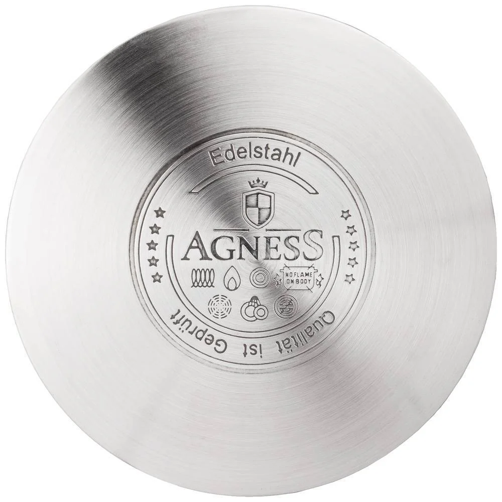 Бренд AGNESS представляет кастрюли из нержавеющей стали серии Black Marble. Изюминка этой серии - это внешнее жаропрочное покрытие выполненное под черный "мрамор" и обеспечивающее высокую износостойкость посуды. Энергосберегающее капсульное дно обеспечивает быстрый и равномерный нагрев посуды. Многослойная структура капсульного дна позволяет накапливать тепло и быстро и равномерно распределять его по всей поверхности посуды, в результате блюда готовиться быстрее. Вы экономите электроэнергию и Ваше время. Подходит для всех видов плит, включая ИНДУКЦИОННЫЕ. Рекомендовано ручная мойка. Удобная мерная шкала на внутренней стенке посуды позволяет отмерить нужный объем без дополнительных аксессуаров. Утолщенные стенки (0,6мм). Надежные клепанные ручки. Удобная стеклянная крышка с паровыпуском.