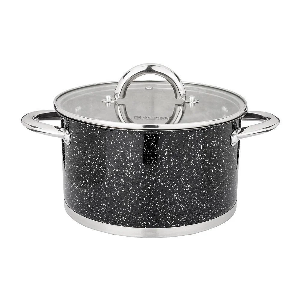 Кастрюля Agness Со Стеклянной Крышкой, Нерж.сталь, Серия Black Marble 4,6л 22х12,5см 937-308