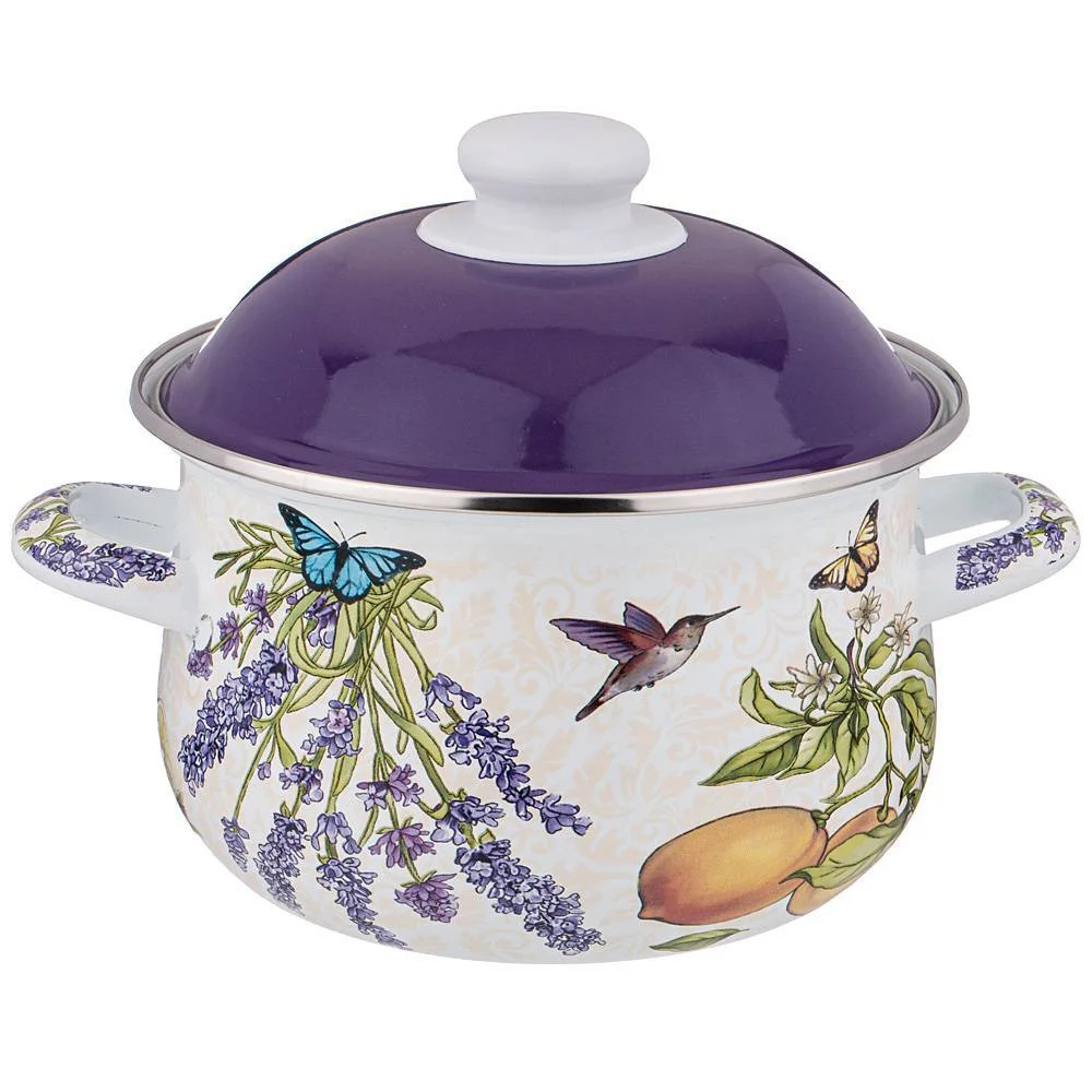 Эмалированная посуда AGNESS - отличный выбор для Вашей кухни! Многие профессиональные повара и домохозяйки выбирают эмалированную посуду. И это не удивительно. Эмалированная посуда обладает целым рядом преимуществ: * Эмалированная посуда не требует особого ухода и легко моется * Эмалированная посуда гигиенична - не удерживает болезнетворных микробов и бактерий * На поверхности эмалированной посуды не остается запаха пищи * В эмалированной посуде можно не только готовить, но и хранить приготовленные блюда, причем довольно долгое время * Подходит для всех типов плит, включая индукционные * Можно мыть в посудомоечной машине * Толщина стенок 0,5мм • Посуда проходит 3 этапа обжига, эта технология позволяет сохранить яркость расцветок деколи, а также придает прочность эмалированной посуде • Все деколи наносятся в ручную, а затем обжигаются при температуре около 800 С Стильный и нежный декор эмалированной посуды украсит любую кухню. Высота кастрюли 13 см, диаметр 22 см, диаметр дна 14 см и ширина с ручками 28 см.