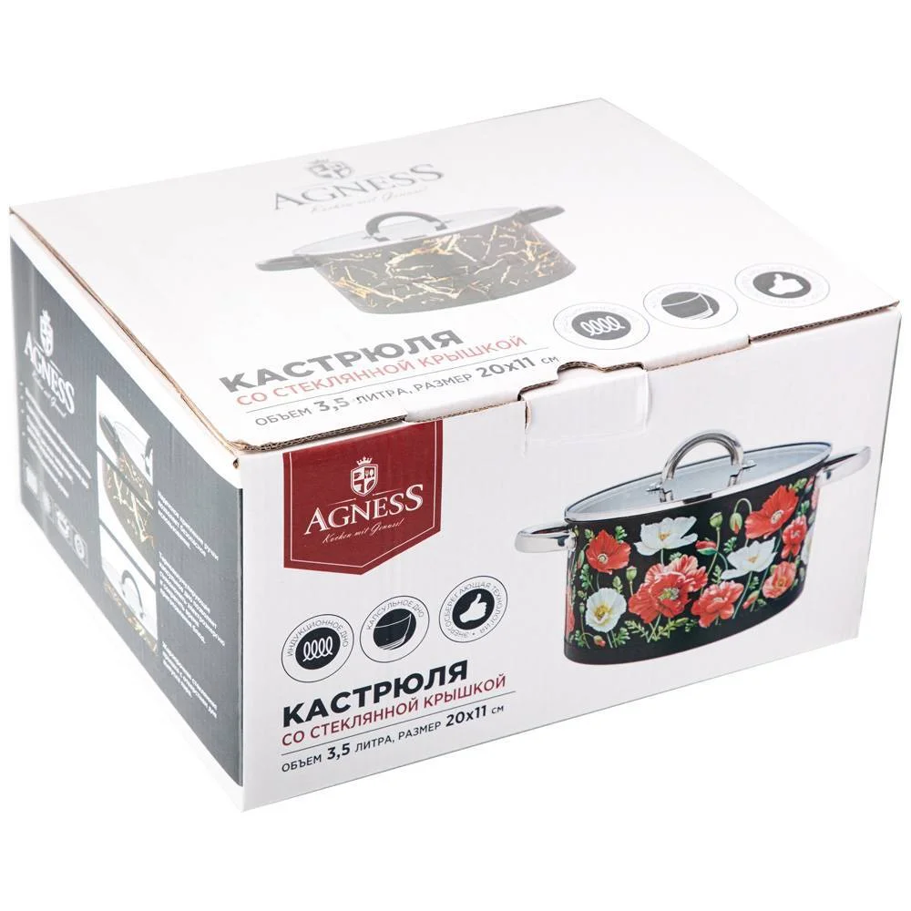 Кастрюля Agness "феерия" Стеклянная Крышка, Индукция, Нерж.сталь,4,6 Л 22х12 См. 916-329