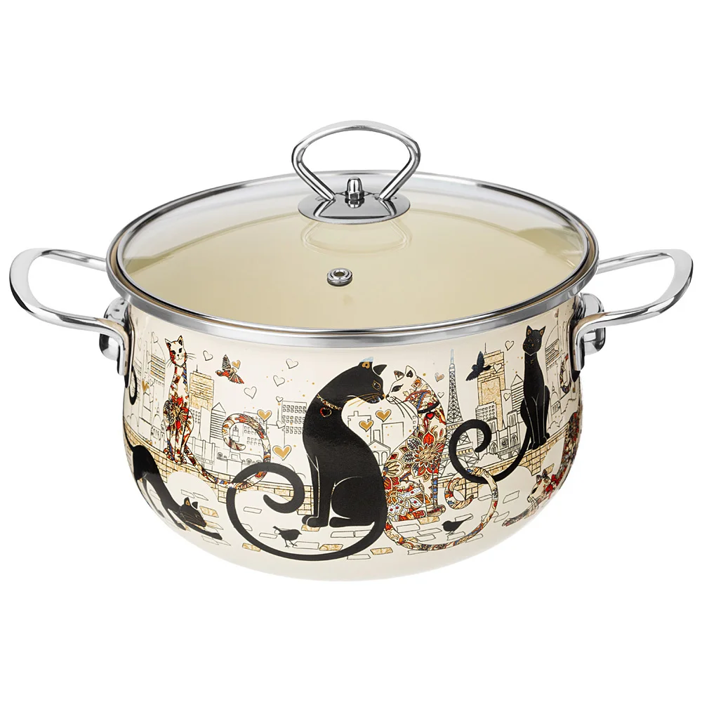 Кастрюля "парижские Коты" 3.6 Л Эмалированная Agness Со Стеклянной Крышкой 22*13 См. 915-153