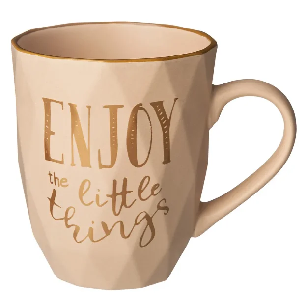 С кружкой "Enjoy the little things" вы будете наслаждаться жизью каждый день. Кружка прекрасно полходит как для холодных напитков, так и для горячих. Объем кржки 340 мл. Кружку нельзя мыть в посудомоечных машинах. Можно использовать в СВЧ.