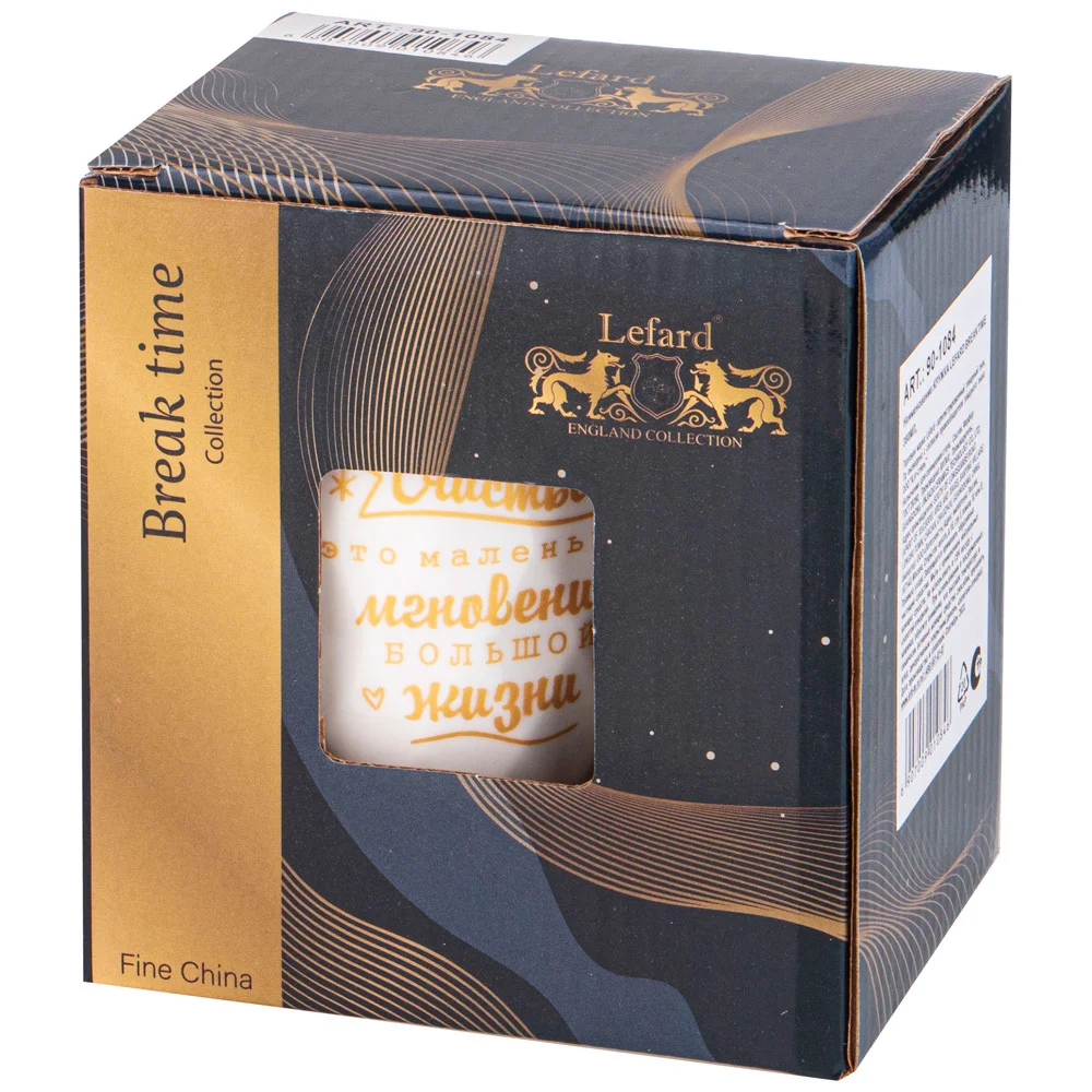 Элегантная кружка "Счастье - это маленькие мгновения большой жизни" заставит вас почувствовать себя счастливым, а также наполнит дом уютом и теплотой. TM Lefard, коллекция "Break time", объем кружки 380 мл. Можно использовать в СВЧ и посудомоечных машинах.