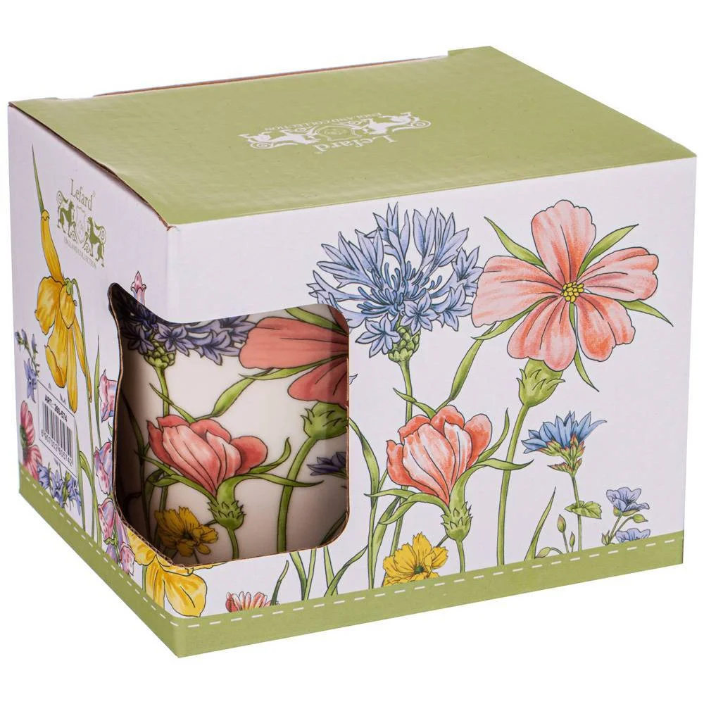 Кружка TM Lefard с очаровательным цветочным дизайном имеет удобную ручку и отличный объем. Кружка изготовлена из качественного фарфора. Отличный выбор для подарка. Продукция сертифицирована и безопасна для контакта с пищевыми продуктами. Можно ставить в микроволновую печь и мыть в посудомоечной машине
