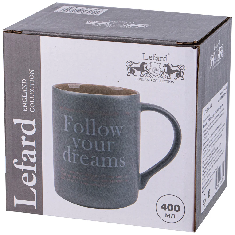 КРУЖКА LEFARD "COFFEEMANIA" объемом 400МЛ выполнена в стиле минимализм. Приглушенные оттенки и лаконичный силуэт - как символ спокойного дня.Кружки LEFARD - это интересные дизайнерские решения, функциональные и стильные вещи для жизни. Вы можете использовать кружки как чашки для чая, кофейные чашки, так и подавать в них холодные напитки. Кружка идеальна в подарок любимым, друзьям, родным, коллегам, любимой бабушке, жене, лучшей подруге на день рождения, новый год, новоселье, юбилей, просто так без повода Размер 12.2*8.2*10.6