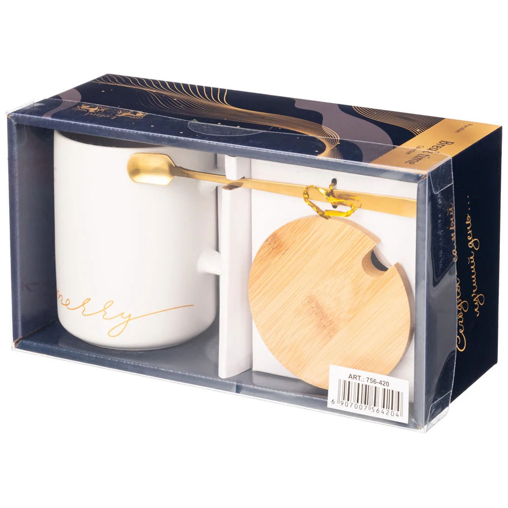 Кружка Белая 380 Мл С Крышкой И Ложкой В Подарочной Упаковке 756-420 Lefard