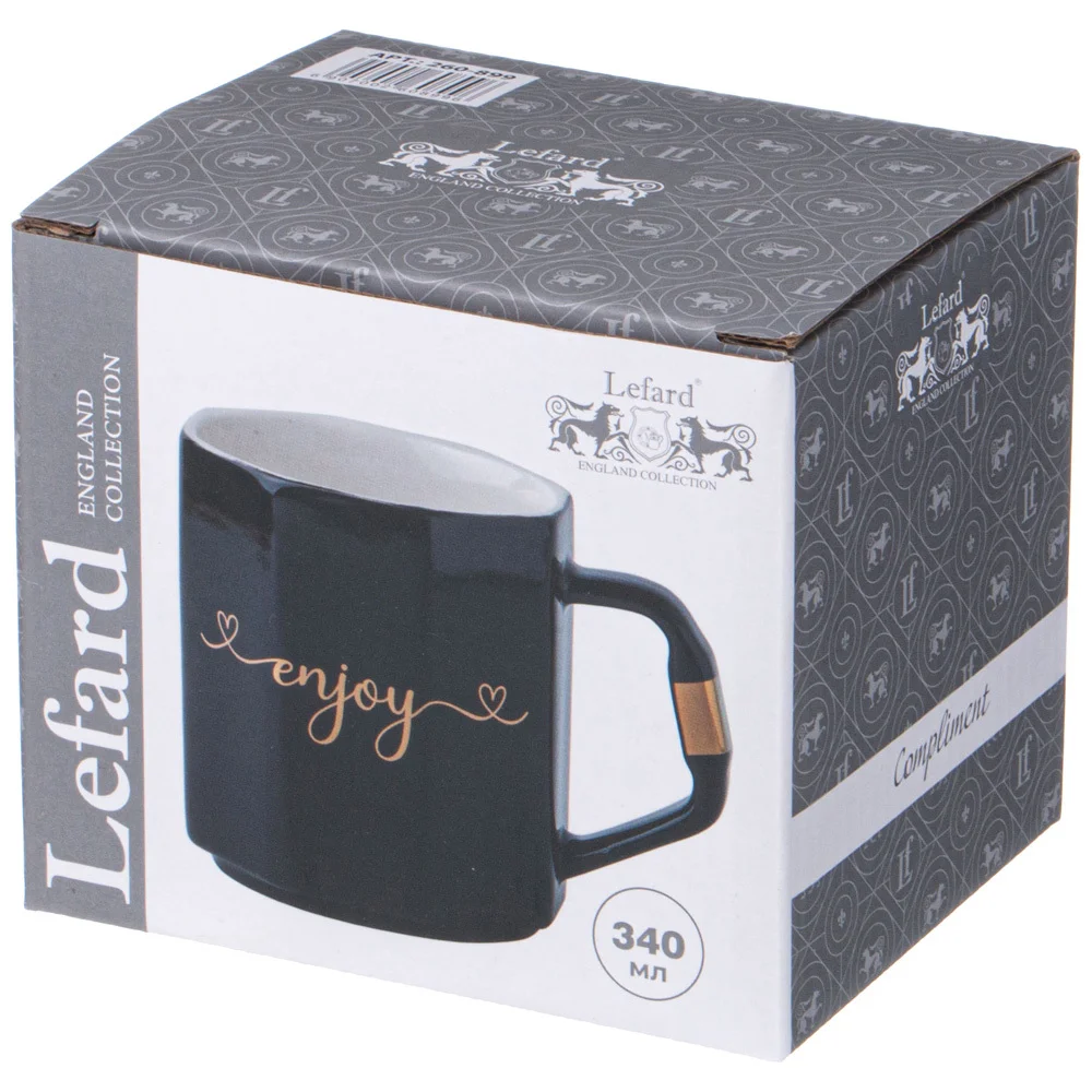 Кружка TM Lefard с лаконичным дизайном и надписью ENJOY имеет удобную ручку и отличный объем 340мл. Кружка изготовлена из качественного фарфора. Отличный выбор для подарка. Продукция сертифицирована и безопасна для контакта с пищевыми продуктами.