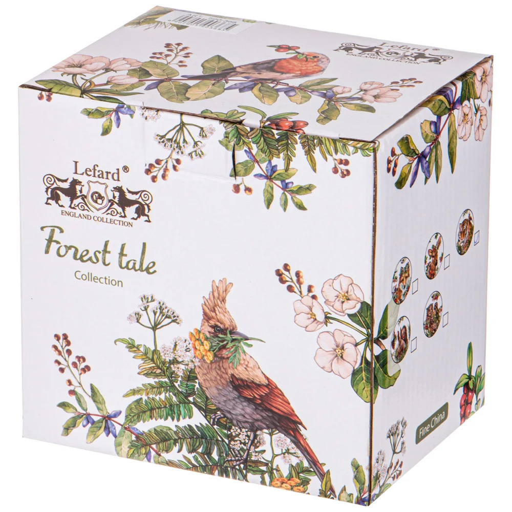 ТМ LEFARD эксклюзивная коллекция «Лесная сказка» из качественного тонкого фарфора. Такие мотивы органично вписываются в любой стиль интерьера, вносят в обстановку определенный колорит, придавая ей эффектные нотки и запах родной природы. Прямые современные формы, удобные объемы, красочная упаковка. Широкий ассортимент тарелок, салатников, кружек, чайных пар и наборов с изображениями Тигра, Лисы, Белки, Совы, Ежа, Птиц, ярких ягод и трав не оставит никого равнодушным. Прекрасный подарок к уютному чаепитию. Разрешено мыть в посудомоечной машине, использовать в микроволновой печи.