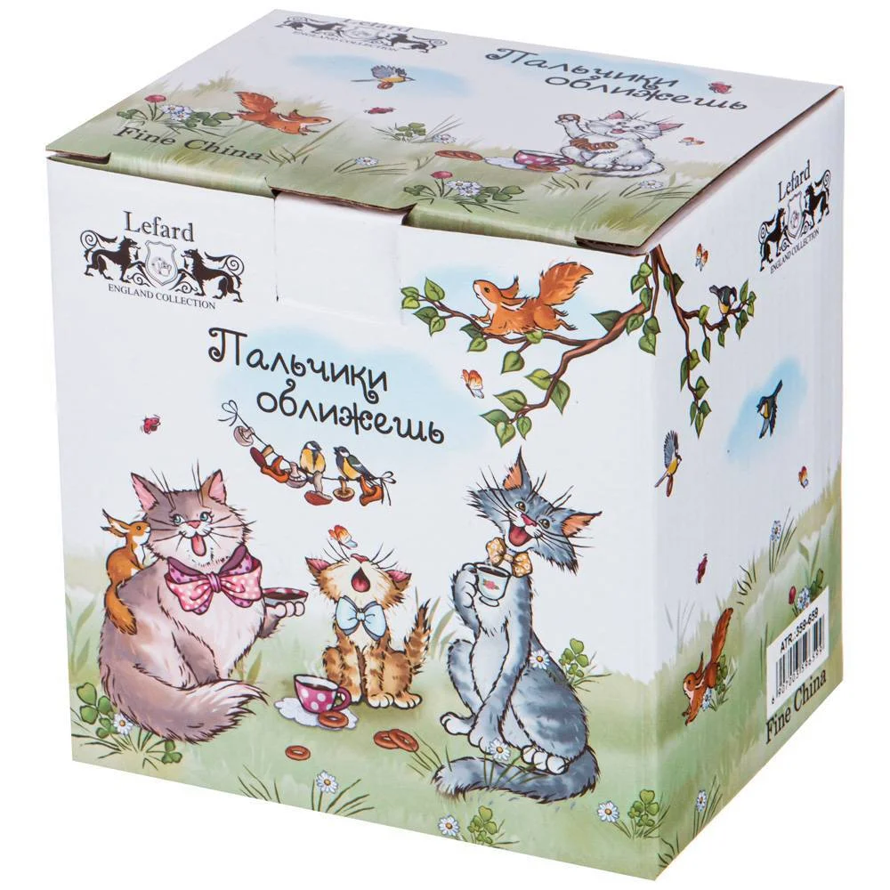 ТМ Lefard коллекция "ПАЛЬЧИКИ ОБЛИЖЕШЬ" - Веселая кошачья семейка на природе, за обедом с пельменями и за самоваром…Посуда и предметы сервировки выполнены из качественного фарфора, пригодна для ежедневного использования. Изделия упакованы в яркую цветную упаковку. Посуда прошла сертификацию. Безопасно для контакта с пищевыми продуктами. Мыть мягкими моющими неабразивными средствами. Можно использовать в микроволновой печи, мыть в посудомоечной машине.