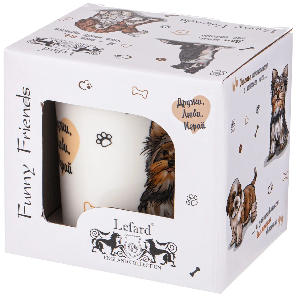 ТМ LEFARD коллекция кружек с любимыми Питомцами. Они дружат, любят, играют и ждут. Изделия из тонкостенного фарфора. Посуда прошла сертификацию. Безопасна для контакта с пищевыми продуктами. Удобная форма. Отличный подарок. Разрешено использование в микроволновой печи, можно мыть в посудомоечной машине мягкими моющими средствами.