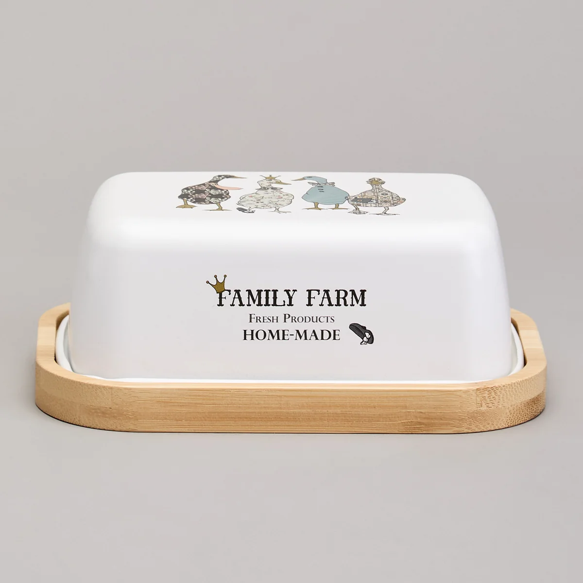 Масленка для хранения сливочного масла является частью системы хранения продуктов на кухне. Основа масленки из натурального дерева. Стальная крышка достаточно плотно прилегает к основе, что позволяет защитить продукты от обветривания и проникновения посторонних запахов. Контейнер для хранения продуктов, который станет незаменимым помощником на вашей кухне. Деревянная масленка с крышкой может использоваться как для хранения сыра! Деревянная основа может использоваться как доска для нарезки. Маслёнка сохранит продукты свежими, как в холодильнике, так и на обеденном столе. Дизайн масленки является частью коллекции, что позволит Вам создать единый стиль серии "FAMILY FARM" Масленка с деревянной подставкой и крышкой - это удобная, практичная и безопасная посуда, которая позволит сохранить свежесть продукта и сделать его подачу на стол эстетичной.