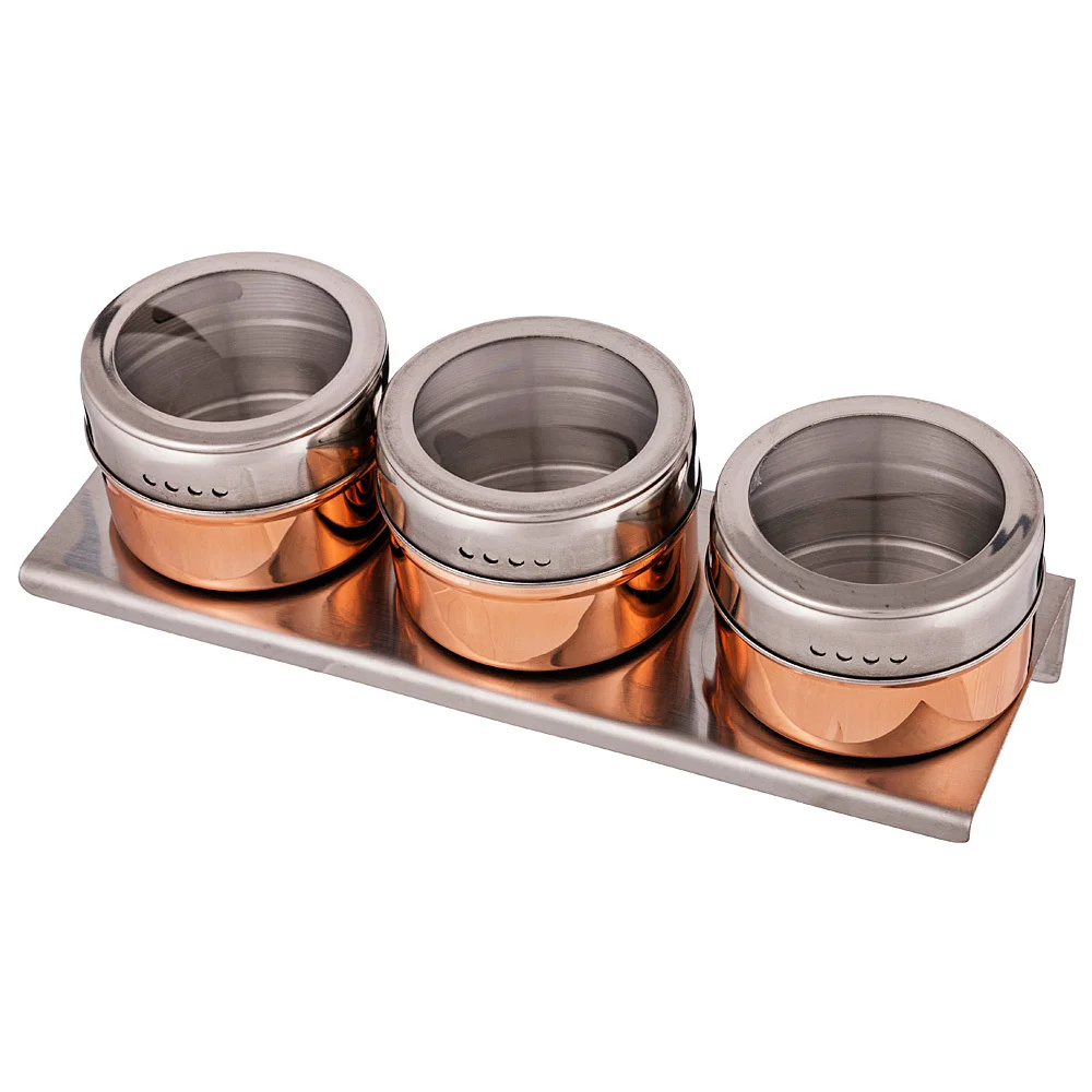 Набор для специй AGNESS – это отличное решение, позволяющее удобно использовать специи и приправы во время приготовления. Засыпанные в емкость специи, их вид и количество видно сквозь прозрачную крышку. Дозировать порцию специй очень легко: по боковой стенке крышки есть два вида отверстий - большего и меньшего размера и достаточно лишь прокрутить крышку до нужного отверстия, чтобы получить нужное количество. Крышка закрывается плотно, тем самым защищая специи от влаги и выветривания аромата. Каждая емкость для специй оснащена магнитом, вмонированным в дно, что позволяет при необходимости закрепить ее на любой другой металлической поверхности, например, дверце холодильника или металлической вытяжке над плитой. Коллекционный дизайн "ROSSO" позволяет поддерживать интерьер в едином стиле. ТМ AGNESS - готовьте с удовольствием!