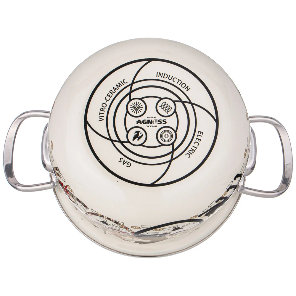 Эмалированная посуда AGNESS - отличный выбор для Вашей кухни! Многие профессиональные повара и домохозяйки выбирают эмалированную посуду. И это не удивительно. Эмалированная посуда обладает целым рядом преимуществ: • Эмалированная посуда не требует особого ухода и легко моется • На поверхности эмалированной посуды не остается запаха пищи. • Эмалированная посуда гигиенична - не удерживает болезнетворных бактерий и микробов. Соответственно в такой посуде можно не только готовить, но и хранить различные блюда, причем достаточно длительное время. • Стильный и нежный декор эмалированной посуды украсит любую кухню. • Посуда проходит 3 этапа обжига, эта технология позволяет сохранить яркость расцветок деколи, а также придает прочность эмалированной посуде • Все деколи наносятся вручную, а затем обжигаются при температуре около 800 С • Подходит для всех типов плит, включая ИНДУКЦИОННЫЕ. Стеклянная крышка с паровыпуском. Можно мыть в посудомоечной машине. • Толщина корпуса и дна без эмалированного покрытия 1,2мм. Размер кастрюль: Кастрюля 2,0Л: диаметр 18см, высота 11см, диаметр дна 13см и ширина с ручками 26 см. Кастрюля 2,8Л: диаметр 20см, высота 12см, диаметр дна 13см и ширина с ручками 28 см. Правила ухода за эмалированной посудой просты: • Не использовать абразивные чистящие средства; • Мыть с применением нейтральных моющих средств, подходит для мытья в посудомоечной машине; • Избегать резкого перепада температур. • Не нагревать пустую посуду, а также не допускать выкипания воды. Эмалированные кастрюли не подходят для жарки блюд. • При транспортировке, хранение и спользовании необходимо оберегать эмалированную посуду от механических повреждений