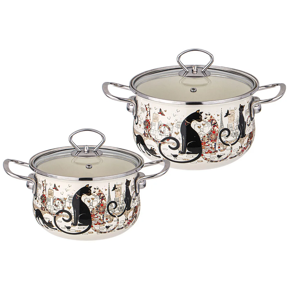 Набор Кастрюль Agness Эмалированных Серия Парижские Коты 4пр. 934-710