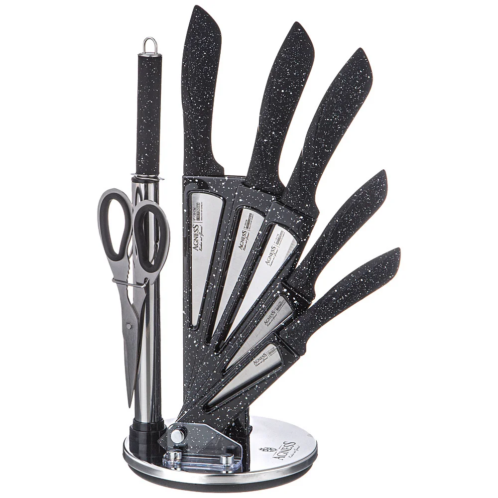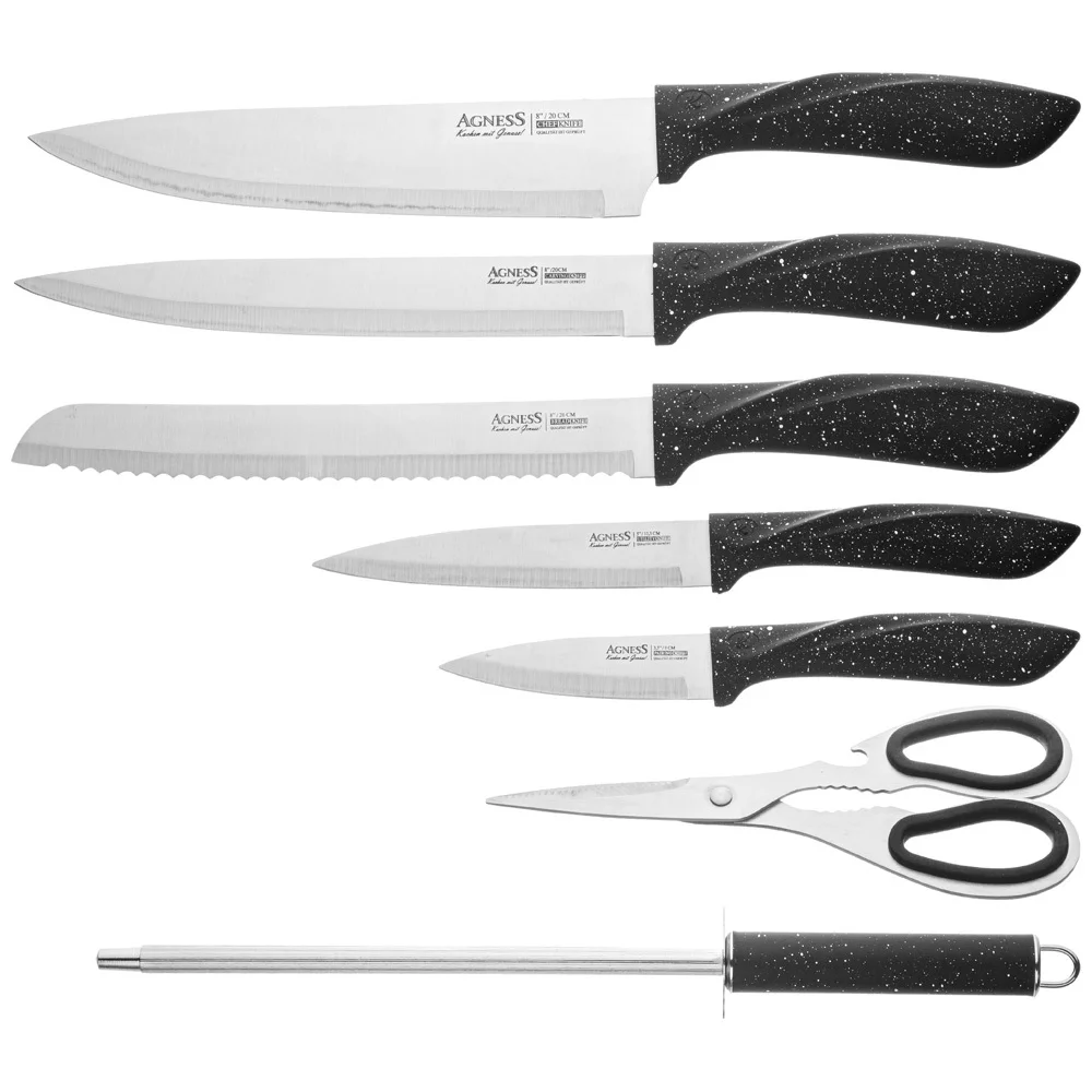 Набор Ножей Agness С Ножницами И Мусатом На Пластиковой Подставке, 8 Предметов. 911-618
