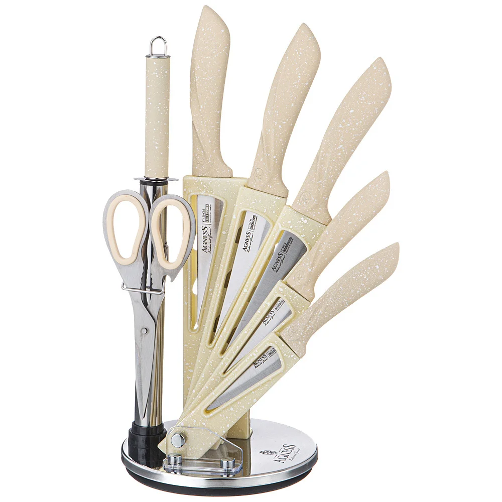 Набор Ножей Agness С Ножницами И Мусатом На Пластиковой Подставке, 8 Предметов. 911-619