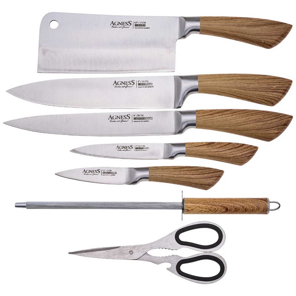 Набор Ножей Agness С Ножницами И Мусатом На Пластиковой Подставке, 8 Предметов 911-640