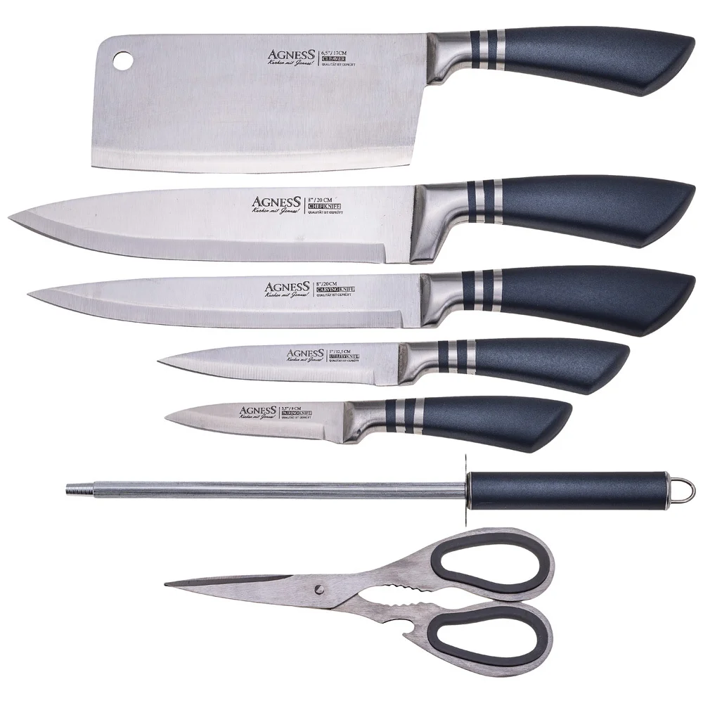 Набор Ножей Agness С Ножницами И Мусатом На Пластиковой Подставке, 8 Предметов 911-642
