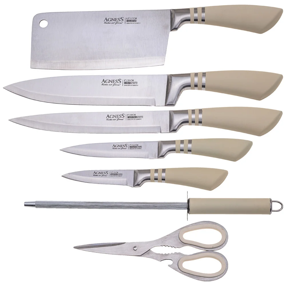 Набор Ножей Agness С Ножницами И Мусатом На Пластиковой Подставке, 8 Предметов 911-644