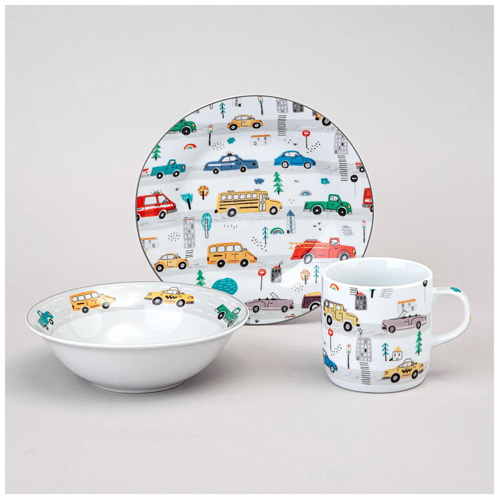 В наборе: тарелка ; тарелка суповая ; кружка Рекомендации по уходу: можно мыть в посудомоечной машине; можно использовать в СВЧ Материал - фарфор Создайте уникальную атмосферу волшебства и радости во время приема пищи для ваших любимых крох с ярким набором детской посуды. Кроме того, посуда выдерживает нагрев в микроволновой печи, что делает ее еще более удобной в использовании.