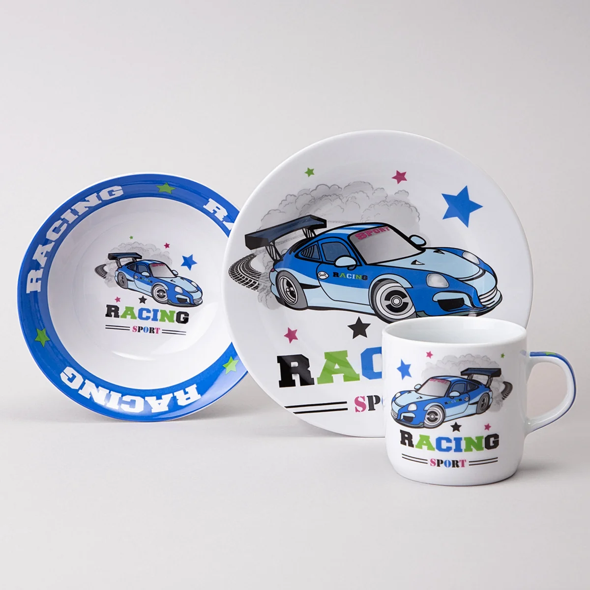 В наборе: тарелка ; тарелка суповая ; кружка Рекомендации по уходу: можно мыть в посудомоечной машине; можно использовать в СВЧ Материал - фарфор Создайте уникальную атмосферу волшебства и радости во время приема пищи для ваших любимых крох с ярким набором детской посуды. Кроме того, посуда выдерживает нагрев в микроволновой печи, что делает ее еще более удобной в использовании.