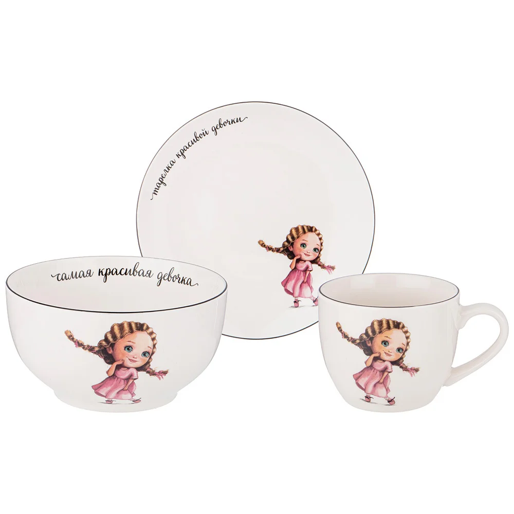Набор посуды lefard красивая девочка, 3 пр.: салатник 470мл, тарелка 20см, кружка 220мл. 260-677