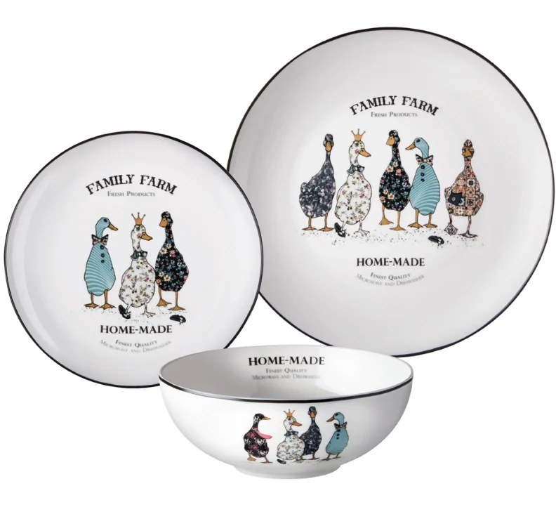 Набор посуды обеденный Lefard «Family Farm» на 6 персон, 18 предметов (артикул 425-298) — это сервиз из коллекции, которая сочетает комфорт, функциональность и современный дизайн. Изделия украшены изображениями гусей, символизирующими семейные ценности и уют.