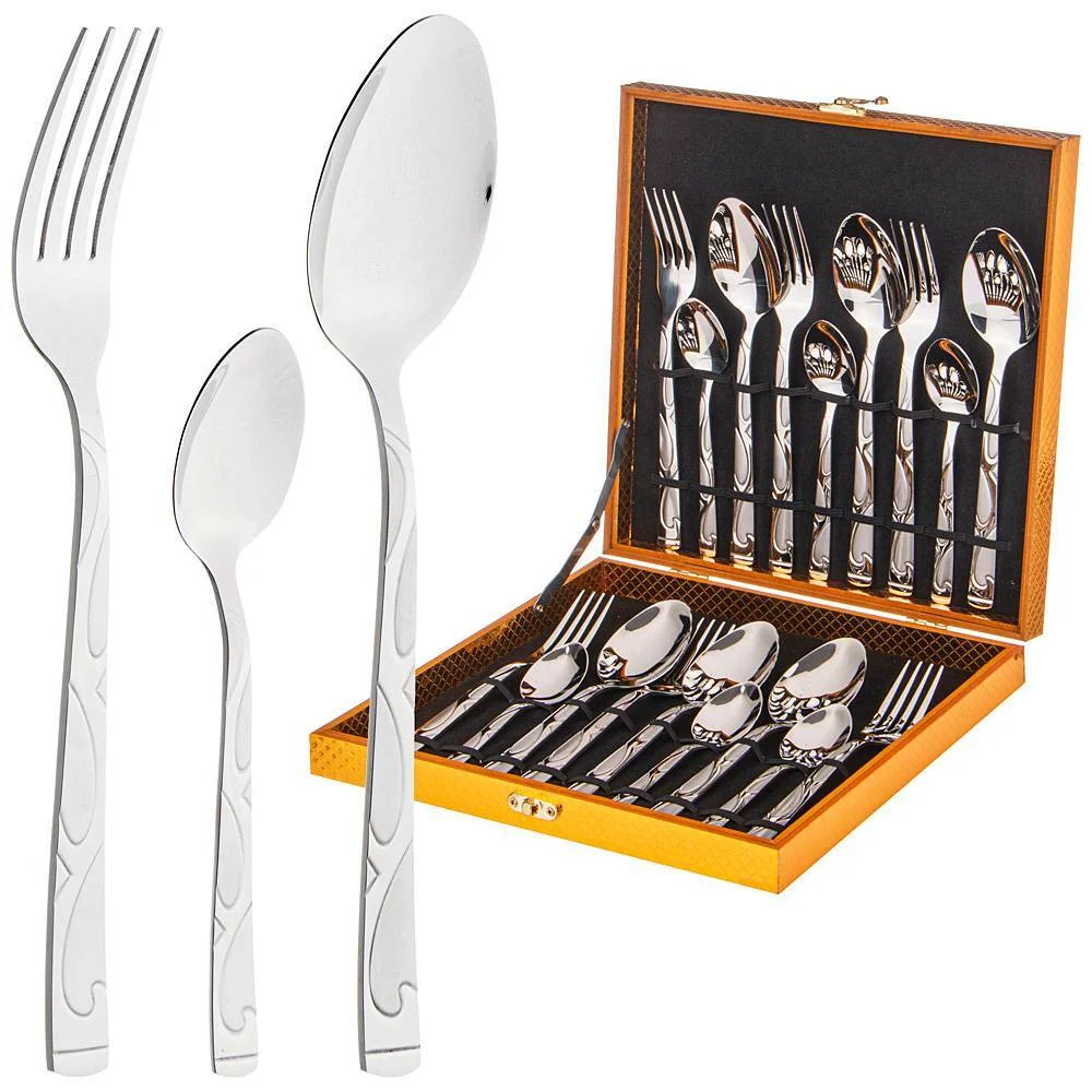 Набор столовых приборов AGNESS - это отличный выбор как для ежедневого использования, так и для сервировки праздничного стола. Набор состоиз из 18пр. - 6 столовых ложек, 6 столовых вилок, 6 чайных ложек. Набор идет в подарочном деревянном кейсе, который также подойдет для дальнейшего хранения столовый приборов. Все предметы набора выполнены из высококачественной нержавеющей стали. Чтобы столовые приборы прослужили как можно дольше, рекомендована ручная мойка. Не змачивайте столовые приборы в воде. После мытья протрите насухо.