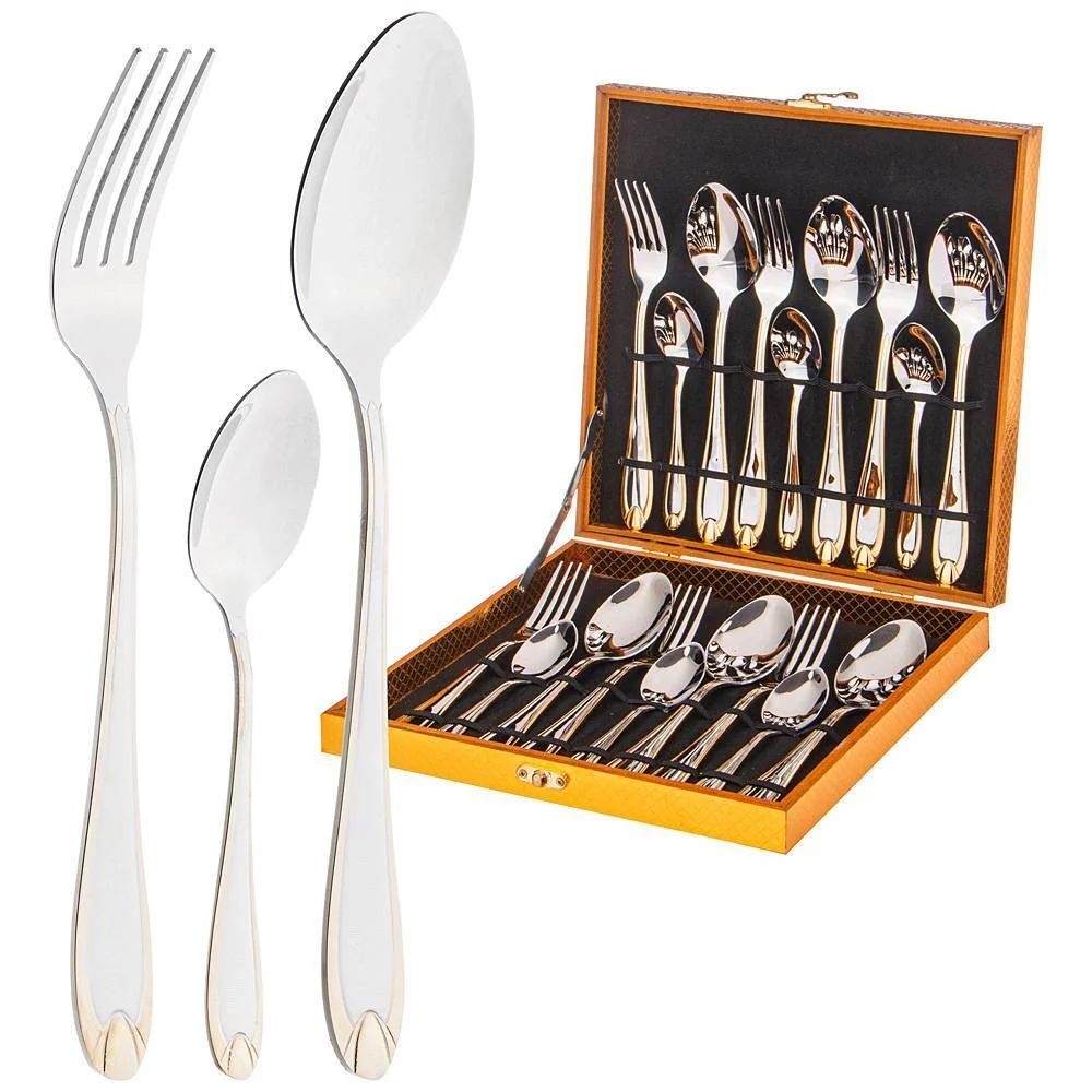 Набор столовых приборов AGNESS - это отличный выбор как для ежедневого использования, так и для сервировки праздничного стола. Набор состоиз из 18пр. - 6 столовых ложек, 6 столовых вилок, 6 чайных ложек. Набор идет в подарочном деревянном кейсе, который также подойдет для дальнейшего хранения столовый приборов. Все предметы набора выполнены из высококачественной нержавеющей стали. Чтобы столовые приборы прослужили как можно дольше, рекомендована ручная мойка. Не змачивайте столовые приборы в воде. После мытья протрите насухо.
