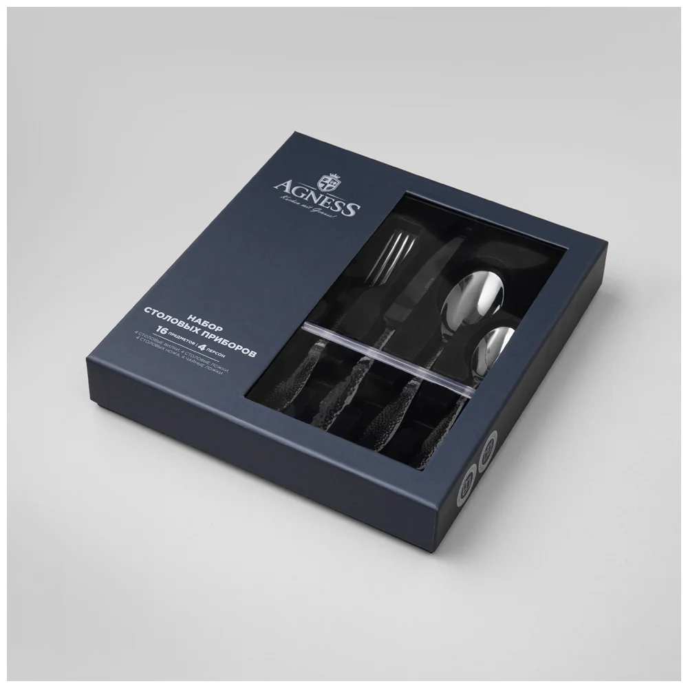Набор столовых приборов AGNESS не только прекрасно выглядят, но и обладают отличной функциональностью. Вилки и ложки имеют комфортные ручки, которые удобно держать в руке. Каждый предмет выполнен из нержавеющей стали , что обеспечивает долговечность и устойчивость к коррозии. Набор столовых приборов является отличным выбором для кухни, где они могут быть использованы в повседневной жизни или во время особых событий и праздников. Они также подходят для ресторанов и кафе, добавляя шарма и элегантности к сервировке стола. Благодаря своей прочности и изысканному дизайну, этот набор столовых приборов станет вашим надежным и стильным спутником на многие годы.Чтобы приборы прослужили долго необходимо соблюдать ряд правил по уходу: использовать мягкие материалы, щадящие моющие эко вещества, замачивать застарелые пятна, исключая механическое воздействие. Запрещается использовать абразивные и хлоросодержащие средства.