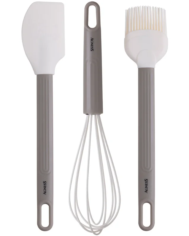 Набор Agness 671-025-1 — это комплект из трёх кухонных аксессуаров: венчика, лопатки и кисточки. Набор предназначен для приготовления пищи и выпечки.