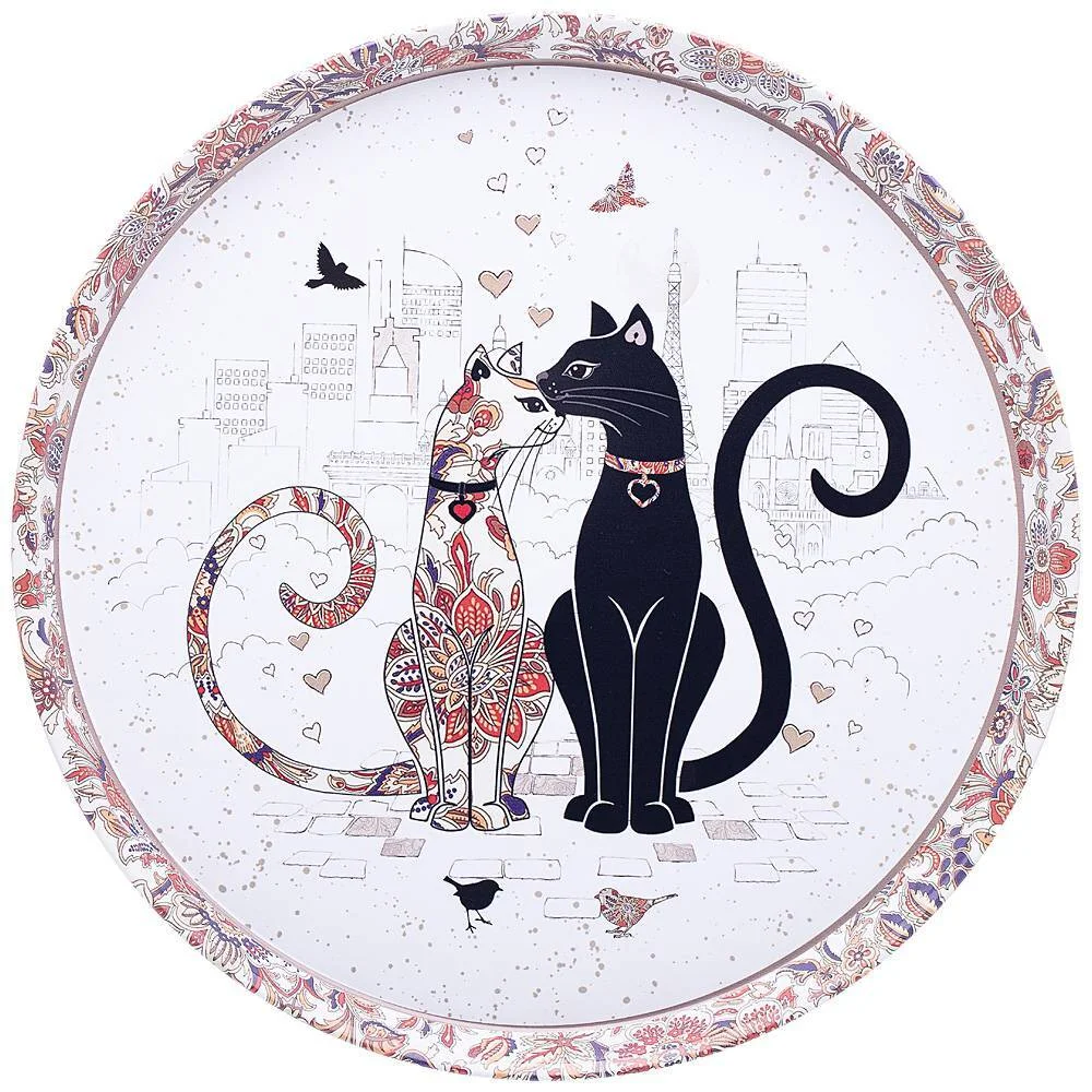 Поднос - это необходимый предмет для организации сервировки стола. Поднос имеет оптимальную круглую форму диаметром 33 см и удобные для переноса содержимого приподнятые стенки высотой 2,1 см. Коллекционный дизайн "Парижские коты" создает уютную атмосферу в интерьере. Благодаря глянцевой поверхности, поднос неприхотлив в уходе – достаточно протереть влажной тряпкой. ТМ AGNESS – отличный выбор!