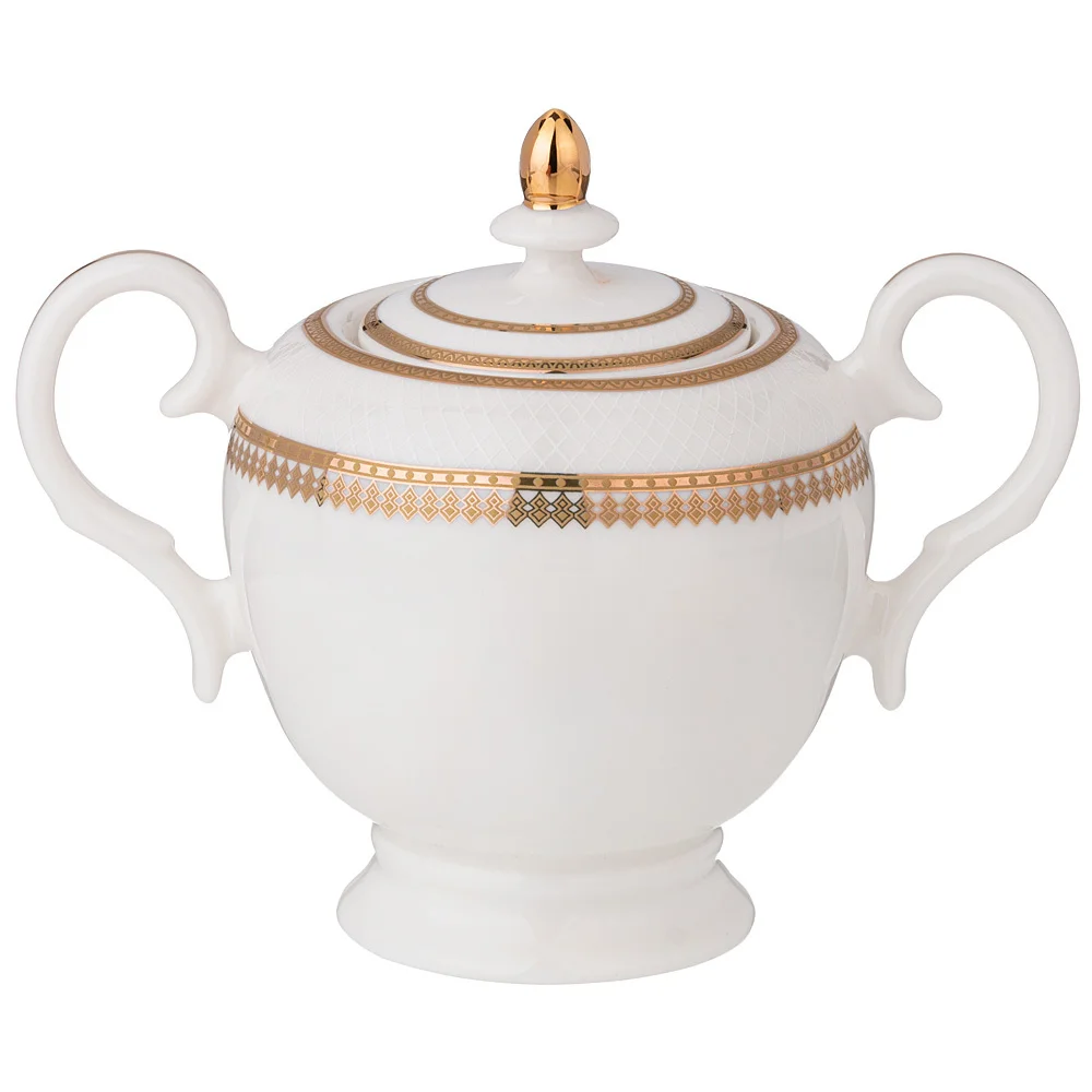 ТМ LEFARD Сахарница "Праздничная" для торжественных застолий и семейных обедов. Изысканный фарфор Bone Pocelain с эффектом костяного фафора, тонкий и полупрозрачный, прочный и никогда не темнеет. Утонченный кружевной рельефный орнамент выглядит объемным и привлекательным благодаря различной обработке выпуклых и базовых поверхностей. Изящная золотая обводка придает блеск и торжественность. Эта посуда замечательный подарок на юбилей, день рождения, новоселье, который наверняка пригодится каждой семье, запомнится навсегда и прослужит долгие годы. Дизайнеры торговой марки предлагают чайный и обеденный сервизы и наборы тарелок и чайных пар, чтобы сформировать полную сервировку стола предметами коллекции на 6 или 12 персон. Не рекомендуется мыть в посудомоечной машине. Нельзя использовать в микроволновой печи.
