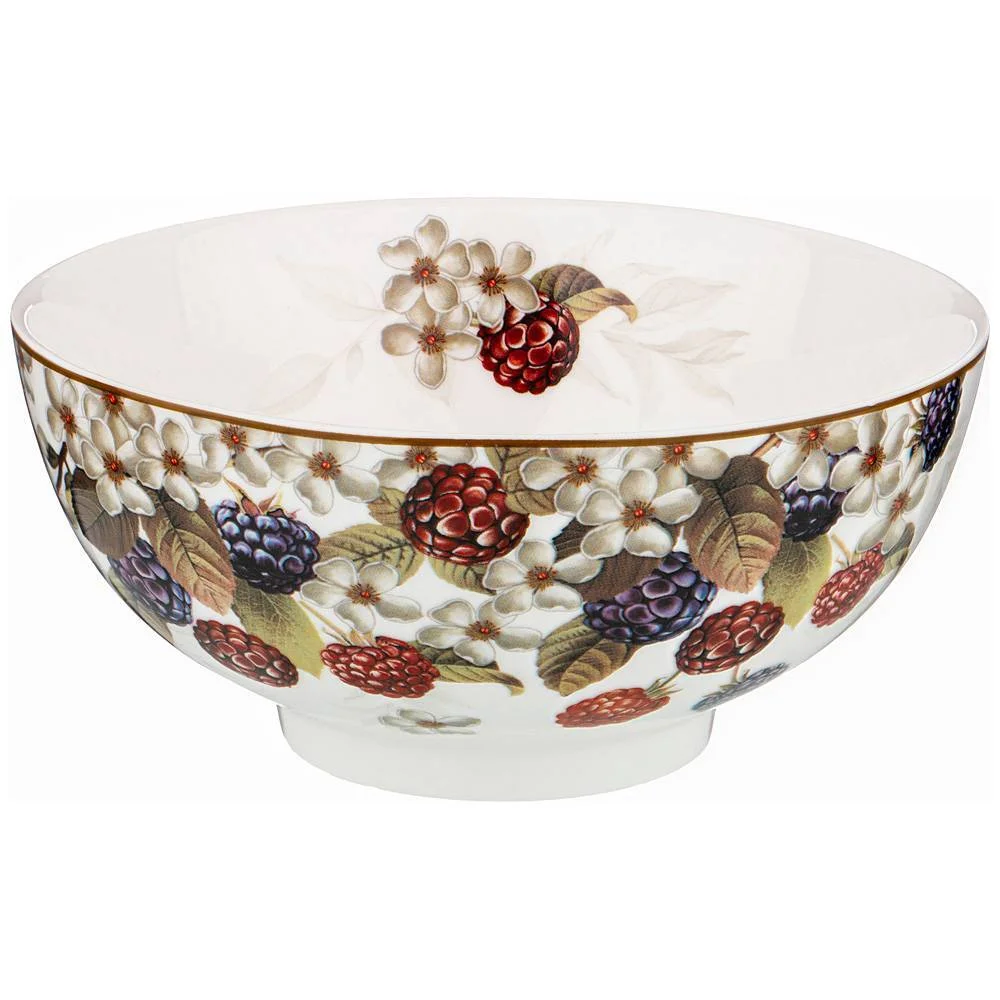 Коллекция "Ежевика" - свежий взгляд на уютную кухню и семейное чаепитие. Эта ягода становится все популярнее на домашнем столе. Джем, мармелад, начинка для выпечки, соус для мяса и утки, добавка во фруктовые салаты и молочные коктейли… Посуда из белоснежного костяного и тонкостенного фарфора с сочными ягодами ежевики станет украшением любого стола. Посуда безопасна для контакта с пищевыми продуктами, сертифицирована. Яркая упаковка делает ее отличным подарком для друзей и близких. Разрешено использование в микроволновой печи, можно мыть в посудомоечной машине мягкими моющими средствами.