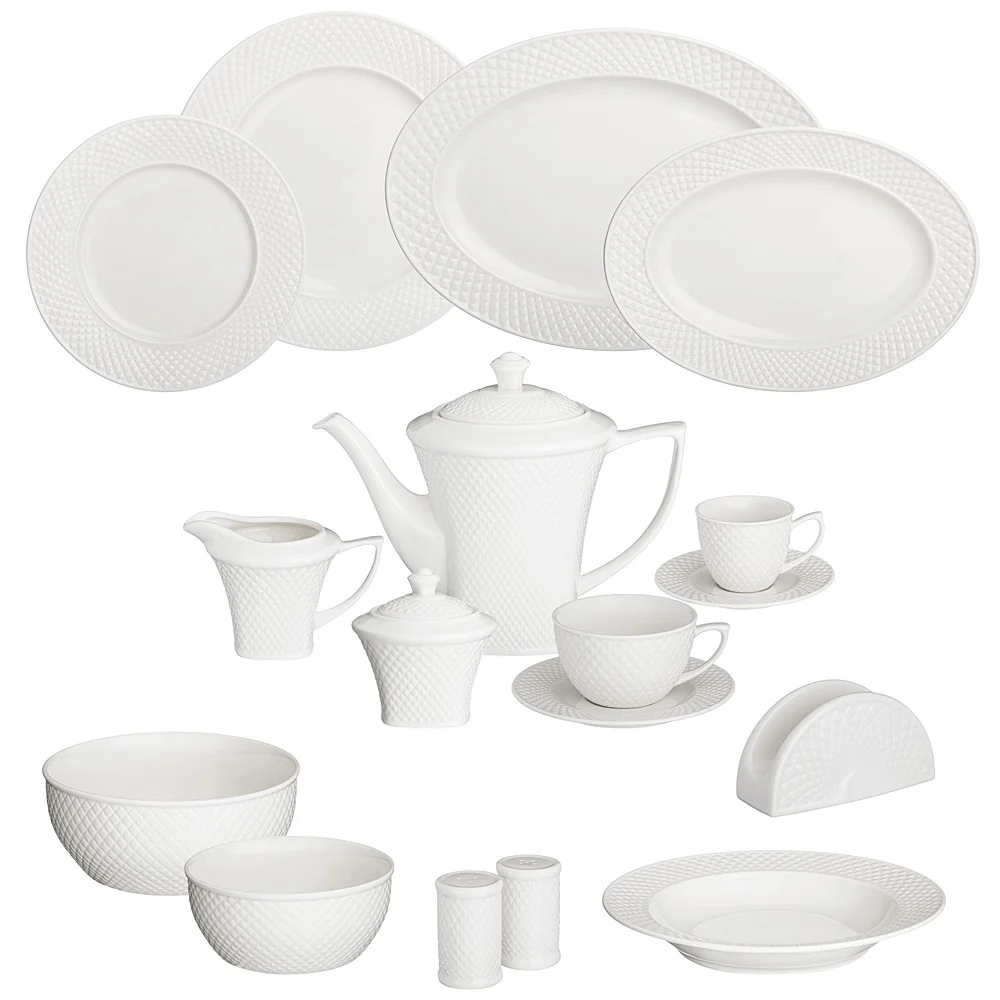 TM Lefard коллекция "Диаманд" - посуда и предметы сервировки из белого фарфора с рельефом. Изделия выполнены из упрочненного фарфора. Стильная упаковка. Идеальная сервировка праздничного и ежедневного стола. Отличный подарок! Продукция сертифицирована, безопасна для контакта с пищевыми продуктами. Можно ставить в микроволновую печь и мыть в посудомоечной машине.