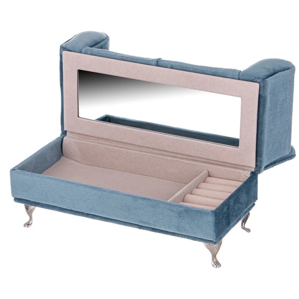 Уникальная открывающаяся шкатулка с крышкой в виде диванчика - это очень удобный способ хранения бижутерии, где у вас все, буквально, по полочкам. Шкатулка станет отличным подарком для любой девушки, будет не только стильным хранилищем для украшений, но и необычной деталью интерьера. Шкатулка содержит внутренее наполнение, где вы можете разложить свою бижутерию и ювелирные украшения и это будет настоящий блеск и настоящая роскошь, внутри есть компактное зеркальце. Такой необычный и яркий подарок обязательно приведет в неописуемый восторг любую девушку. Шкатулка сама, как украшение, весьма изящна и неординарна. Утонченность и уникальность подарят эстетическое удовольствие ценителям прекрасного!