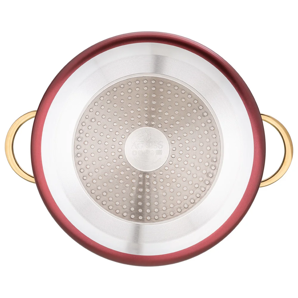 Марка AGNESS представляет посуду турецкого производителя серии Vulcano. Серия Vulcano - это стильная новая форма, интересное цветовое решения и высокое качество производства. Посуда выполнена из кованного алюминия. Благодаря этой технологии посуда становится более прочной, износостойкой и не подвержена деформации. Алюминий - один из лучших проводников, такая посуда быстро и равномерно нагреваются, а значит Ваши блюда готовятся быстро и не подгорают. Основные преимущества посуды серии Vulcano: * Антипригарное покрытие Granite внутри и снаружи. Блюда не прилипают во время готовки, а посуду легко мыть! * Прочное титановое покрытие ручек защищает металл от коррозии. Благодаря такому покрытию, посуду можно мыть в посудомоечной машине и она останется как новая. * Крышка выполнена из массивного термостойкого стекла * Подходит для всех видов плит, включая ИНДУКЦИОННЫЕ * Толщина корпуса 3,5мм Готовьте с удовольствием в посуде AGNESS! Рекомендации: Металлическая ручка может нагреваться. Используйте прихватку, чтобы не обжечься. Чтобы посуда прослужила как можно дольше, рекомендуется использовать деревянные или силиконовые лопатки. Не используйте острые кухонные аксессуары. Избегайте резких перепадов температур при использовании. Резкий перепад температур снижает антипригарные свойства покрытия. Не остужайте горячую посуду под струей холодной воды.