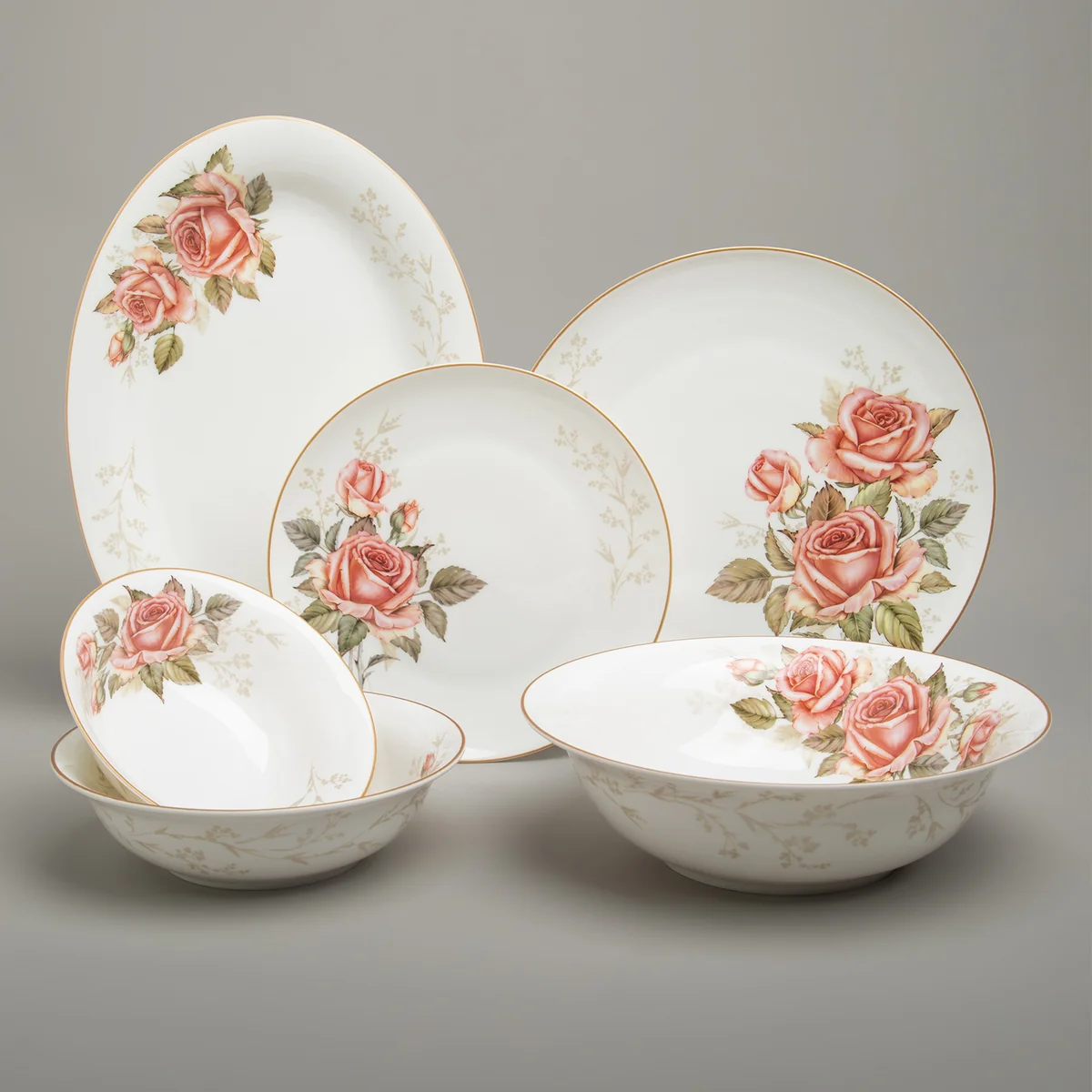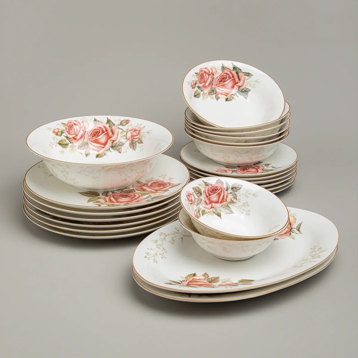 TM LEFARD коллекция "Корейская роза" - это ремейк эксклюзивной коллекции роз на современных формах с окантовкой под золото. Нежные цветы легко узнаваемы и любимы многими. Роза - королева цветов, она популярна во всём мире с древних времен. Этот цветок выглядит изящно и утончённо, считается символом любви, красоты и романтики. Тонкостенный белый фарфор, рельефная деколь, красочная упаковка делают предметы коллекции прекрасным подарком по любому случаю. Продукция сертифицирована и безопасна для контакта с пищевыми продуктами. Можно использовать в микроволновой печи, не рекомендуется мыть в посудомоечной машине. Комплектность: тарелка обеденная 25,5 см 6 шт., тарелка закусочная 20,5 см 6 шт, салатник-тарелка суповая 18*5 см 700 мл 6 шт, блюдо овальное 32*22 см 2 шт., салатник 23*7 см 1400 мл 1 шт., салатник 15,5*5 см 400 мл 2 шт.