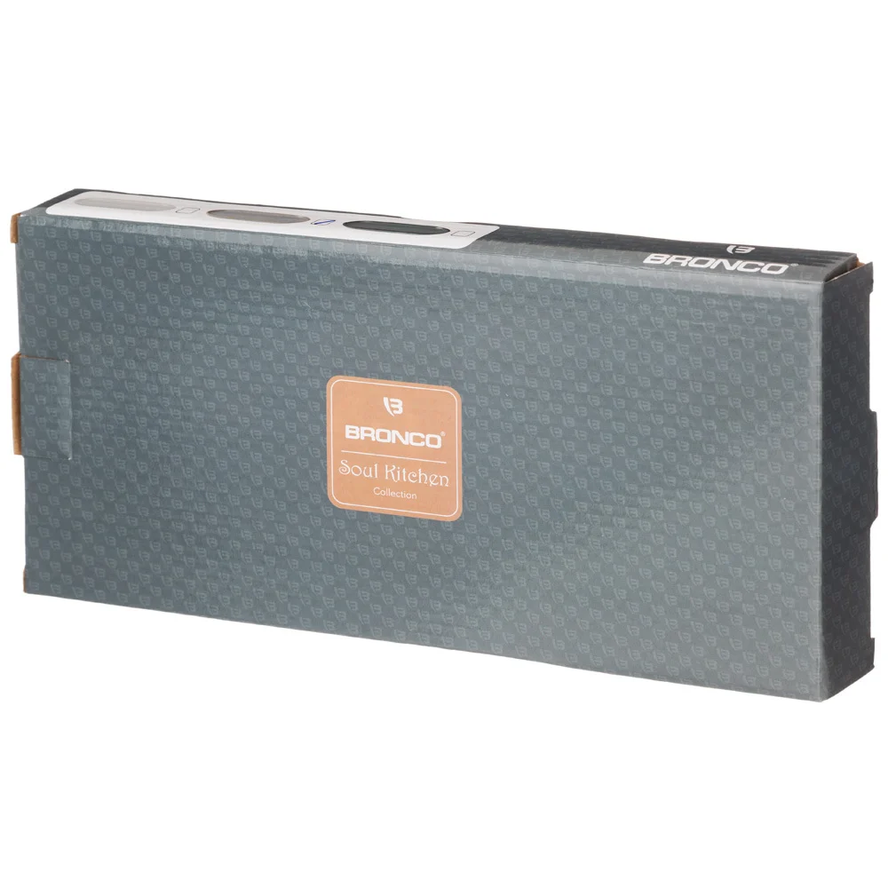Профессиональная команда дизайнеров ТМ "BRONCO" неустанно следит за меняющейся модой и фокусируется на дизайне, специфике подачи блюд европейской и русской кухонь, инновациях в технологии. Коллекция “Soul Kitchen” – Душа кухни поражает своей смелостью, стилем, множеством интересных идей для сервировки и интерьера. Упрочненный фарфор на каждый день - это отличный подарок себе и своим друзьям. Коллекция “Soul Kitchen” представлена в трех цветовых решениях - это белый базовый, светлый серый и сине-зеленый, которые прекрасно сочетаются и дополняют друг друга. Особый шик и прочность придает многослойная глазурь - комбинация нескольких глазурей, которые нанесены последовательно и обожжены за один прием. Слои перемешиваются в обжиге непредсказуемым образом, цвет становится плотным и насыщенным и это очень красиво. Большое внимание уделено формам, они удобные, оптимальных размеров и помогут воплотить в жизнь многие кулинарные рецепты. Тарелки, блюда, доски, чаши, подставки, формы для выпечки, кувшины, банки, кружки… – широкий ассортимент “Soul Kitchen” для кухни, впишется в любой интерьер. Все изделия сертифицированы. Стильная упаковка. Можно смело мыть в посудомоечной машине, ставить в микроволновую печь. Готовьте с удовольствием!